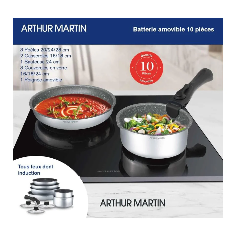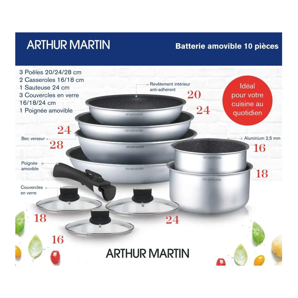 In elkaar passende potten en pannen met afneembare handgreep – set van 10 stuks – Arthur Martin