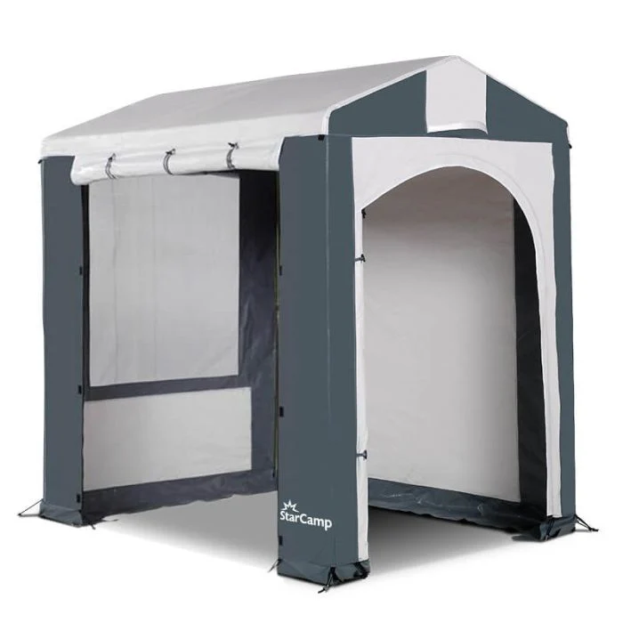 Deze veelzijdige tent kan gebruikt worden als kooktent, opbergruimte of handige schuurtent voor kampeermateriaal, fietsen of andere uitrusting. Dankzij de extra hoogte geniet je van meer bewegingsvrijheid en comfort tijdens het gebruik.