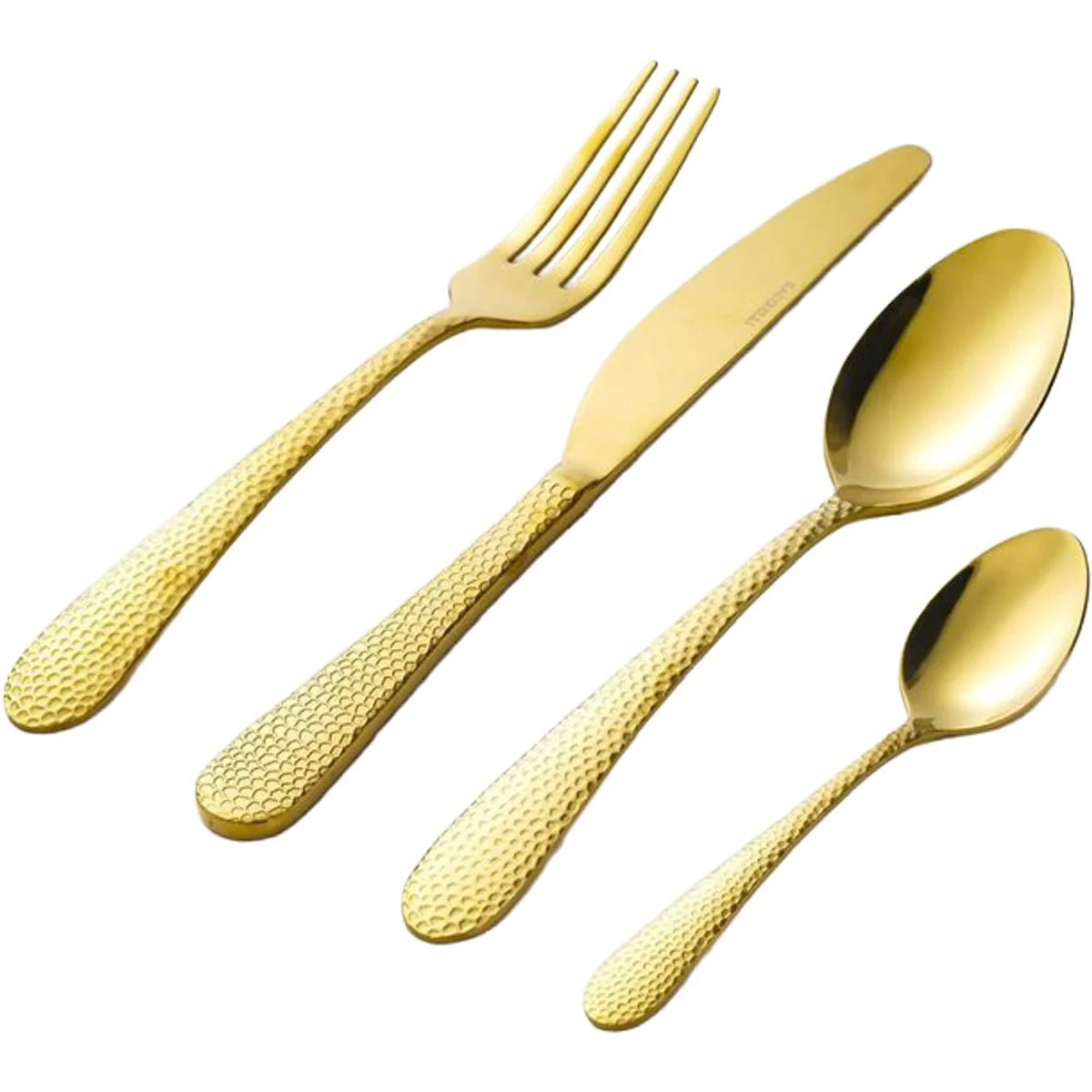 Geef je eettafel een koninklijke uitstraling met de Kadirelli Diamond Bestekset in Goud – een luxe 24-delige set die elegantie en kwaliteit feilloos combineert. Het subtiel gestructureerde Diamond-patroon op de handgrepen en de glanzende gouden afwerking maken van elke maaltijd een stijlvolle belevenis, of je nu een feestelijk diner of een gezellige maaltijd thuis organiseert. Gemaakt van hoogwaardig roestvrij staal, is deze set niet alleen een lust voor het oog, maar ook bestand tegen dagelijks gebruik. Het ergonomische ontwerp zorgt voor een comfortabele grip, waardoor je keer op keer kunt genieten van een fijne eetervaring.