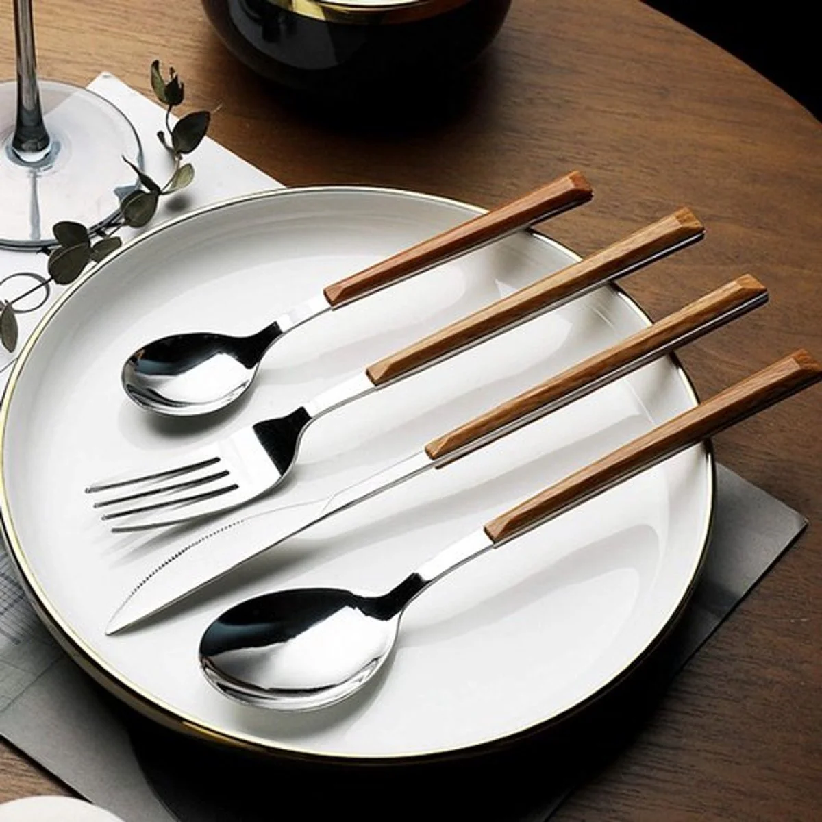 Geef je eettafel een warme en elegante uitstraling met de Kadirelli Bestekset – de perfecte combinatie van natuurlijke charme en moderne verfijning!