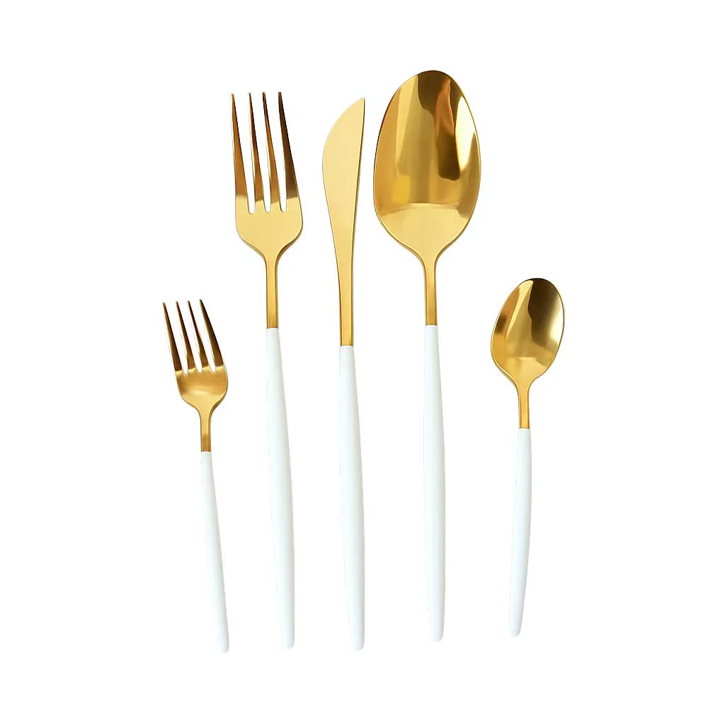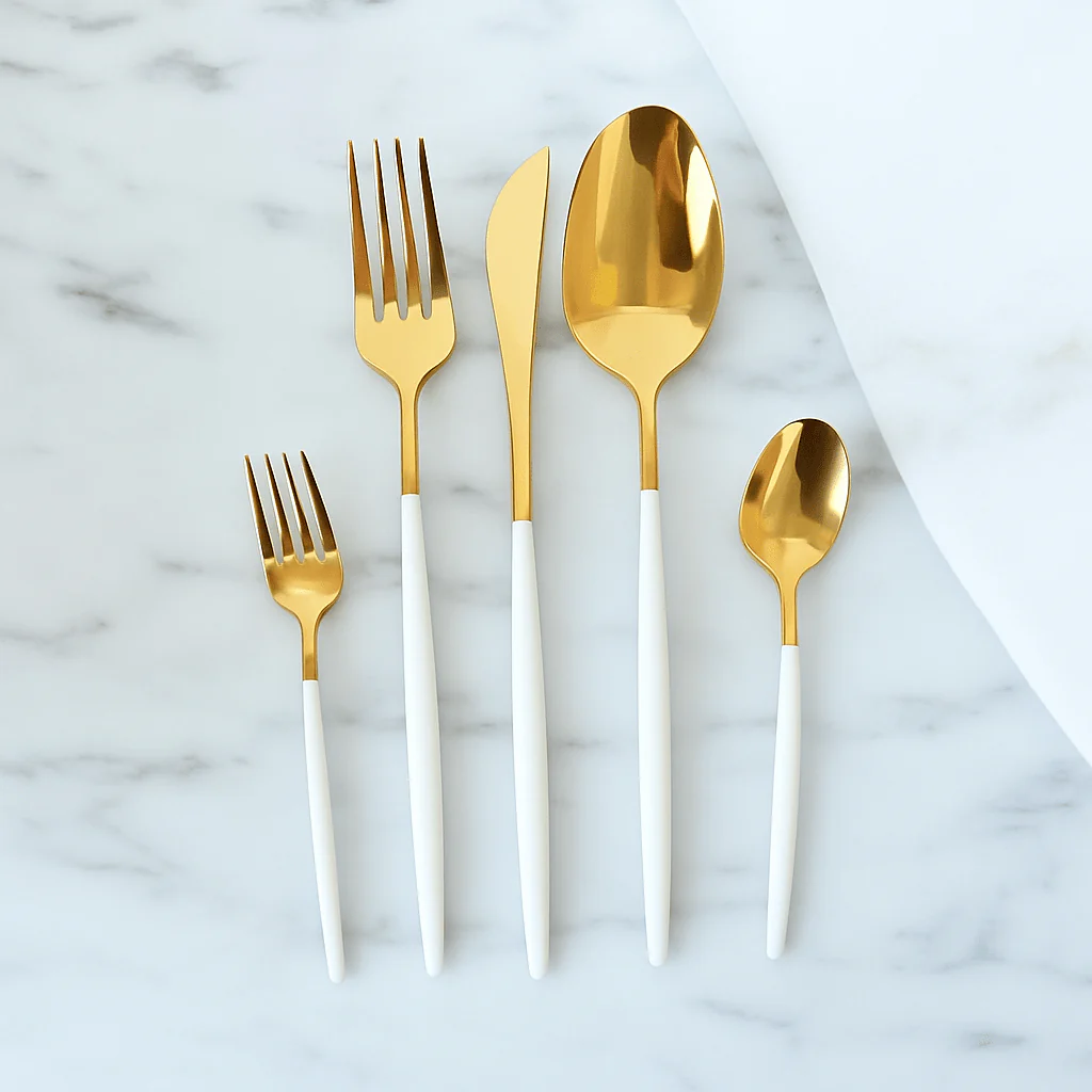 Voeg een vleugje luxe toe aan je eetmomenten met de Kadirelli Goud/Witte Bestekset – de perfecte keuze voor jezelf of als prachtig cadeau voor een speciale gelegenheid!