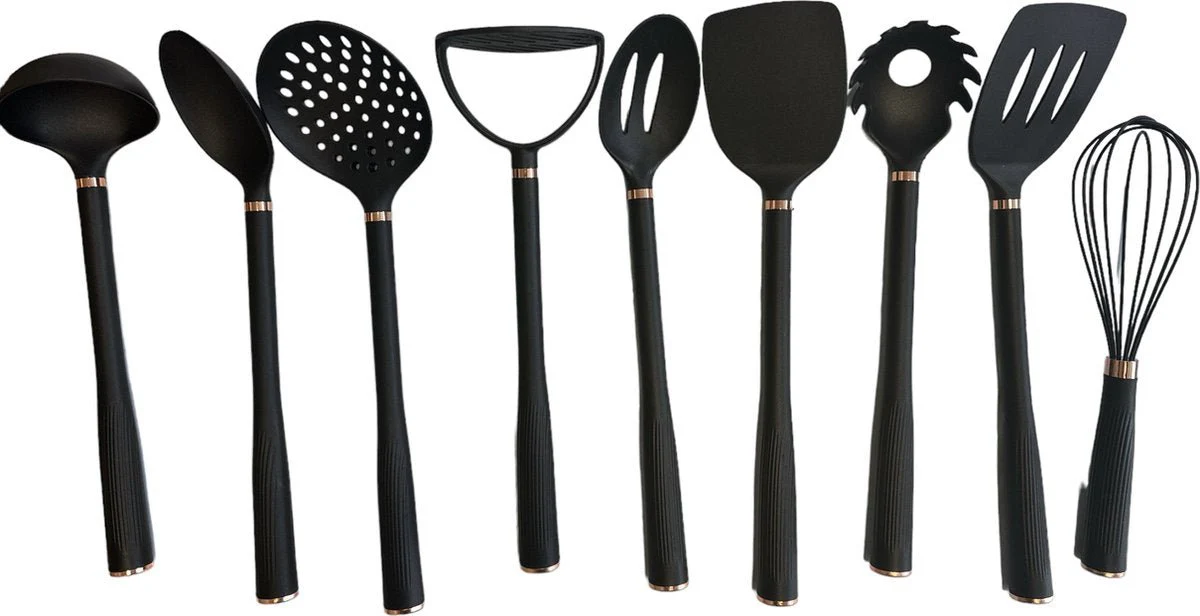Kadirelli Keukengerei Set 10-delig met Houder – Keukengerei Set – Zwart / Rosé Goud