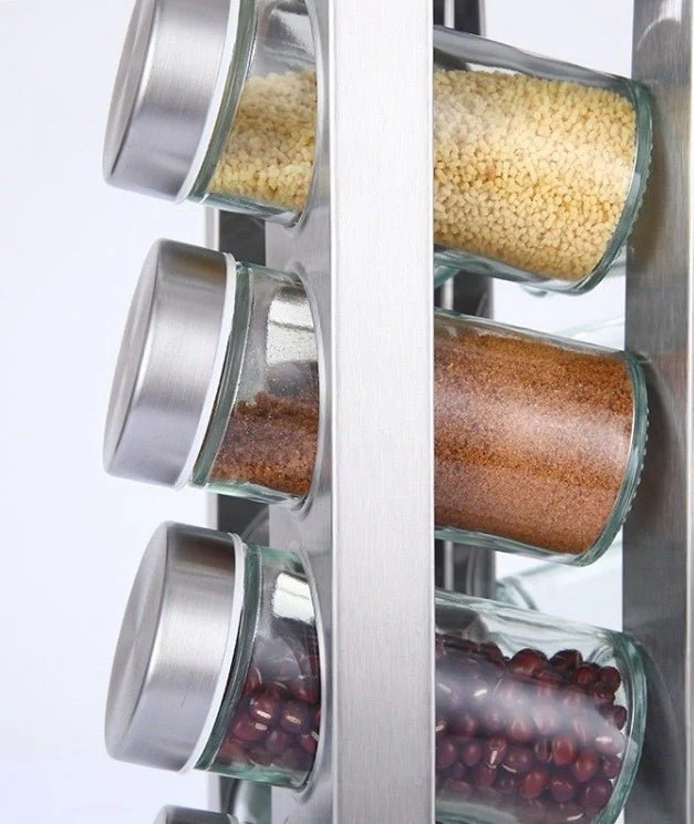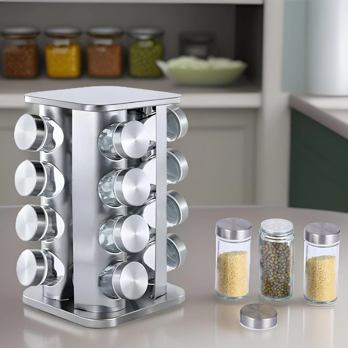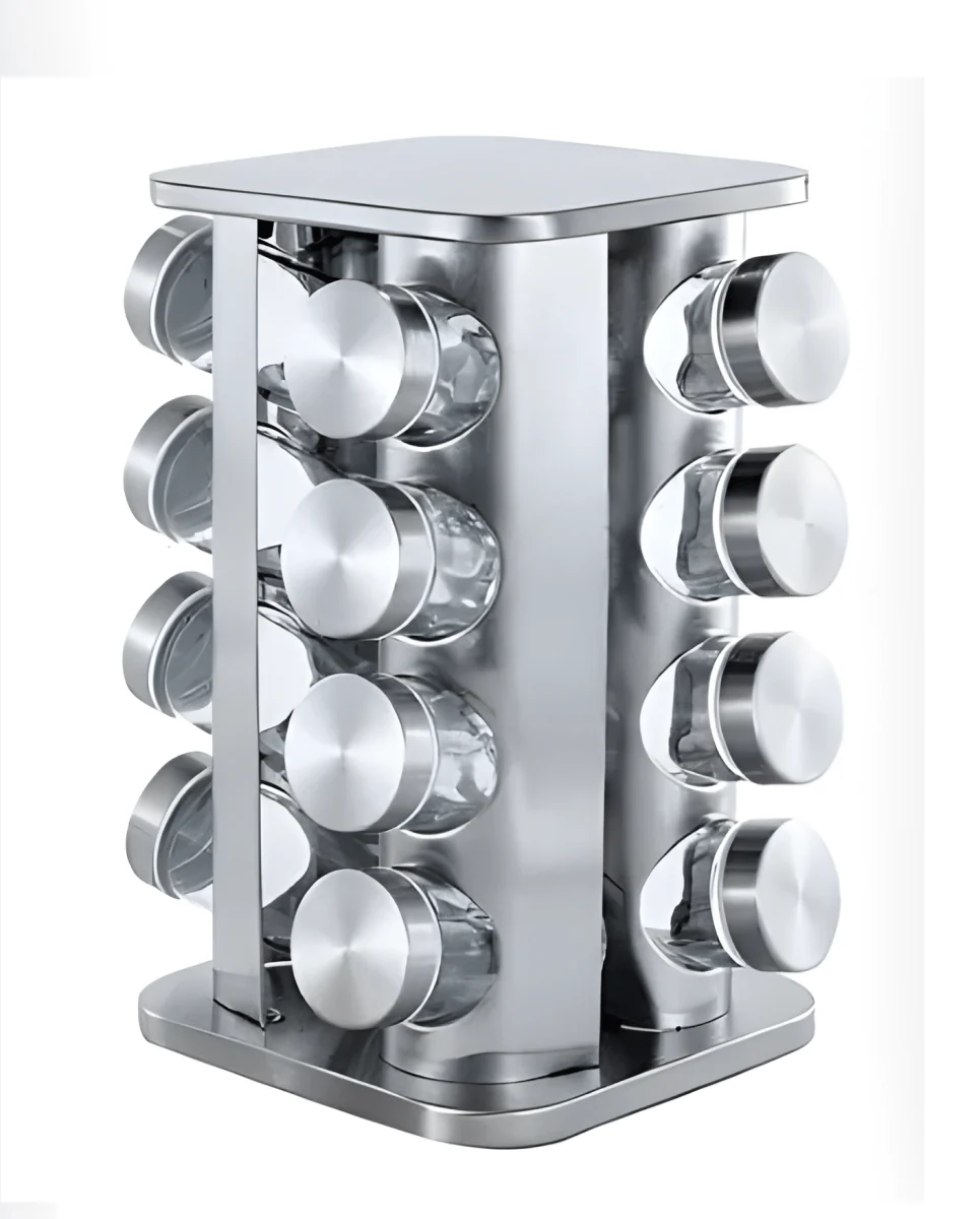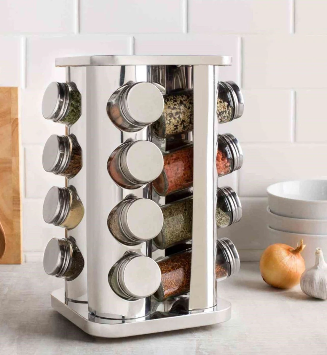 Houd je keuken georganiseerd én stijlvol met deze zilveren roestvrijstalen kruidencarrousel met 16 glazen potjes. Met zijn moderne uitstraling en praktische indeling is dit de perfecte oplossing voor het overzichtelijk bewaren van al je favoriete kruiden en specerijen. Dankzij de 360 graden draaibare voet heb je altijd alles binnen handbereik – ideaal tijdens het koken of aan tafel.