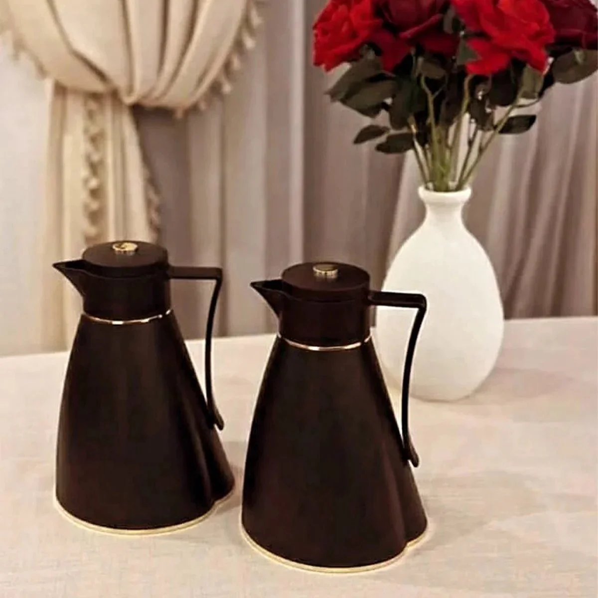 Breng luxe en functionaliteit samen met de Kadirelli Thermoskan Set van 2 – 1L + 1L in Zwart/Goud. Deze stijlvolle set is perfect voor wie houdt van warme dranken in stijl, of je nu thuis bent, op kantoor werkt of gasten ontvangt. Met hun opvallende zwart-gouden design en hoogwaardige RVS afwerking zijn deze thermoskannen niet alleen praktisch, maar ook echte blikvangers op tafel.