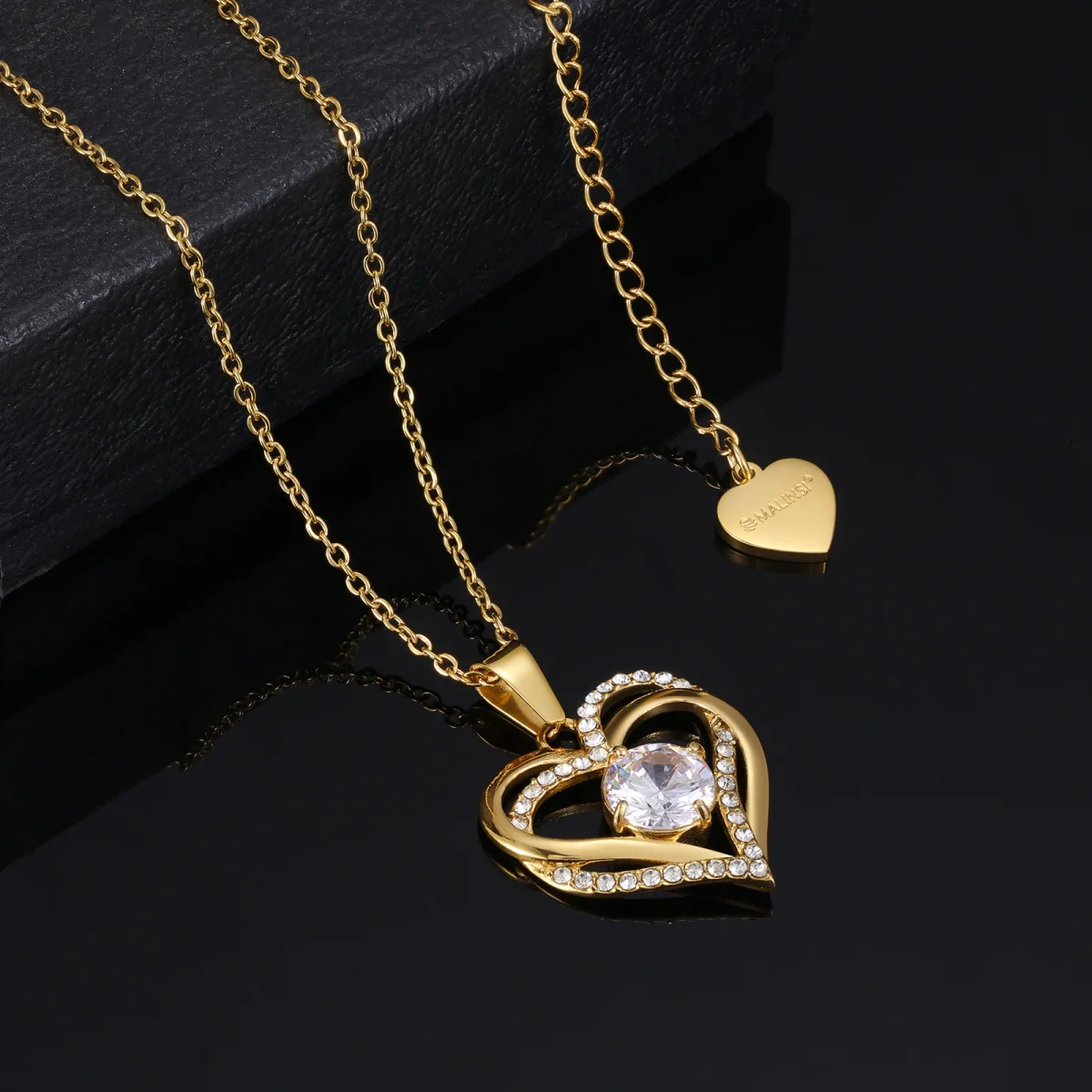 Deze ketting met twee verworven hartjes belegd met sprankelende Zirkonia steentjes symboliseert verbondenheid en liefde. Doordat de ketting is gemaakt van de sterkste materialen zal hij lang blijven schitteren. Ook is de ketting verstelbaar gemaakt om ervoor te zorgen dat hij ook bij jou mooi om de hals zal hangen. De Malinsi ketting wordt geleverd in een speciaal fluwelen zakje met een strik zodat het ontvangen van de oorstekers extra speciaal wordt. Kies jou of haar favoriete Malinsi ketting en ontdek de sprankeling in dit design!