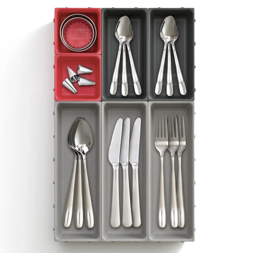 Maak het organiseren van o.a. camperlades een fluitje van een cent met de Joseph Joseph Duo bestekorganiser. Dankzij de 7 veelzijdige bakjes met handig kliksysteem past deze organiser moeiteloos in elke lade. Perfect voor bestek, gereedschap of knutselspullen, met antislip voetjes die alles op zijn plek houden. Flexibel, praktisch en stevig: de ideale oplossing voor elke camper, caravan of ander vrijetijdsvoertuig en natuurlijk thuis!