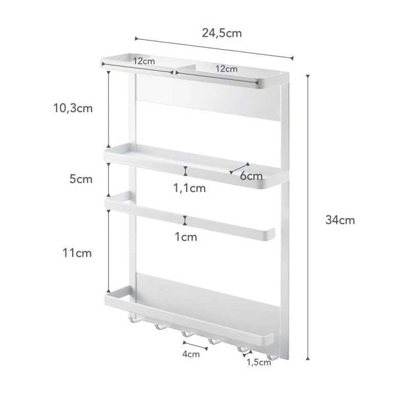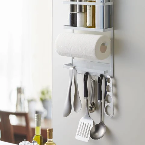 Dit moderne magnetische rek van Yamazaki is een ideale opberger en bespaart veel ruimte uit je keukenkastjes. Het kan op ieder metalen oppervlak worden bevestigd of worden voorzien van 2 zelfklevende magneetstrips en zo aan de keukenwand in de camper of caravan bevestigen. Blijft goed zitten tijdens het rijden.