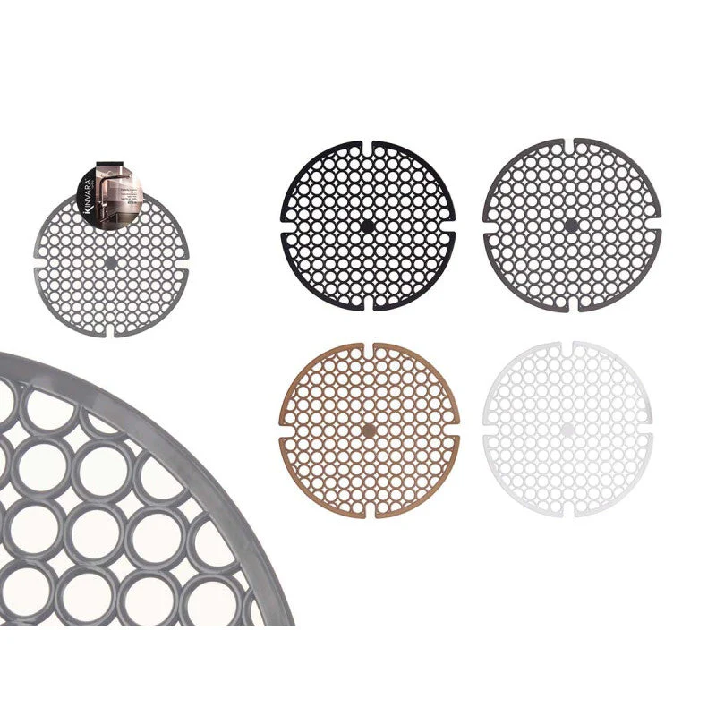 Breng comfort en bescherming in je keuken met de Kinvara Gootsteenmat – Rond 29 cm – Set van 4. Deze stijlvolle en functionele spoelmatten zijn ontworpen om je spoelbak en servies te beschermen tegen krassen, stoten en hitte. De set bevat vier matten in de neutrale kleuren wit, grijs, zwart en beige – perfect om te combineren met elk keukendesign. De ronde vorm zorgt voor een elegante uitstraling én veelzijdig gebruik.