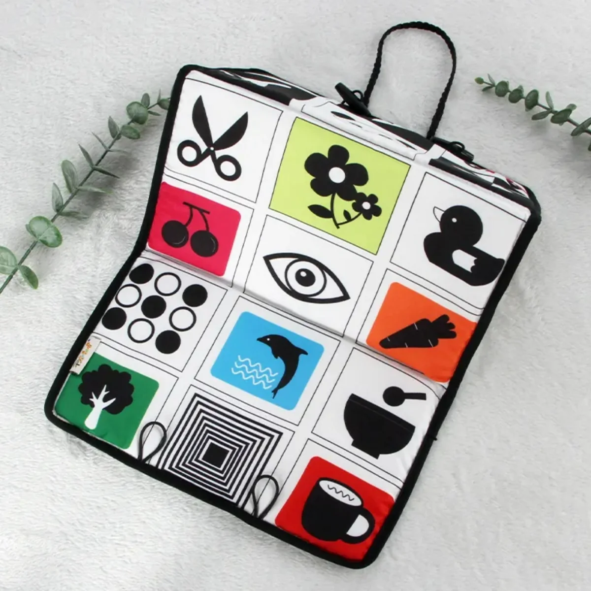 - Ideaal voor Tummy Time: Het grote formaat en het zachte materiaal maken het boekje perfect voor tummy time, wat de nek- en rugspieren van je baby versterkt.