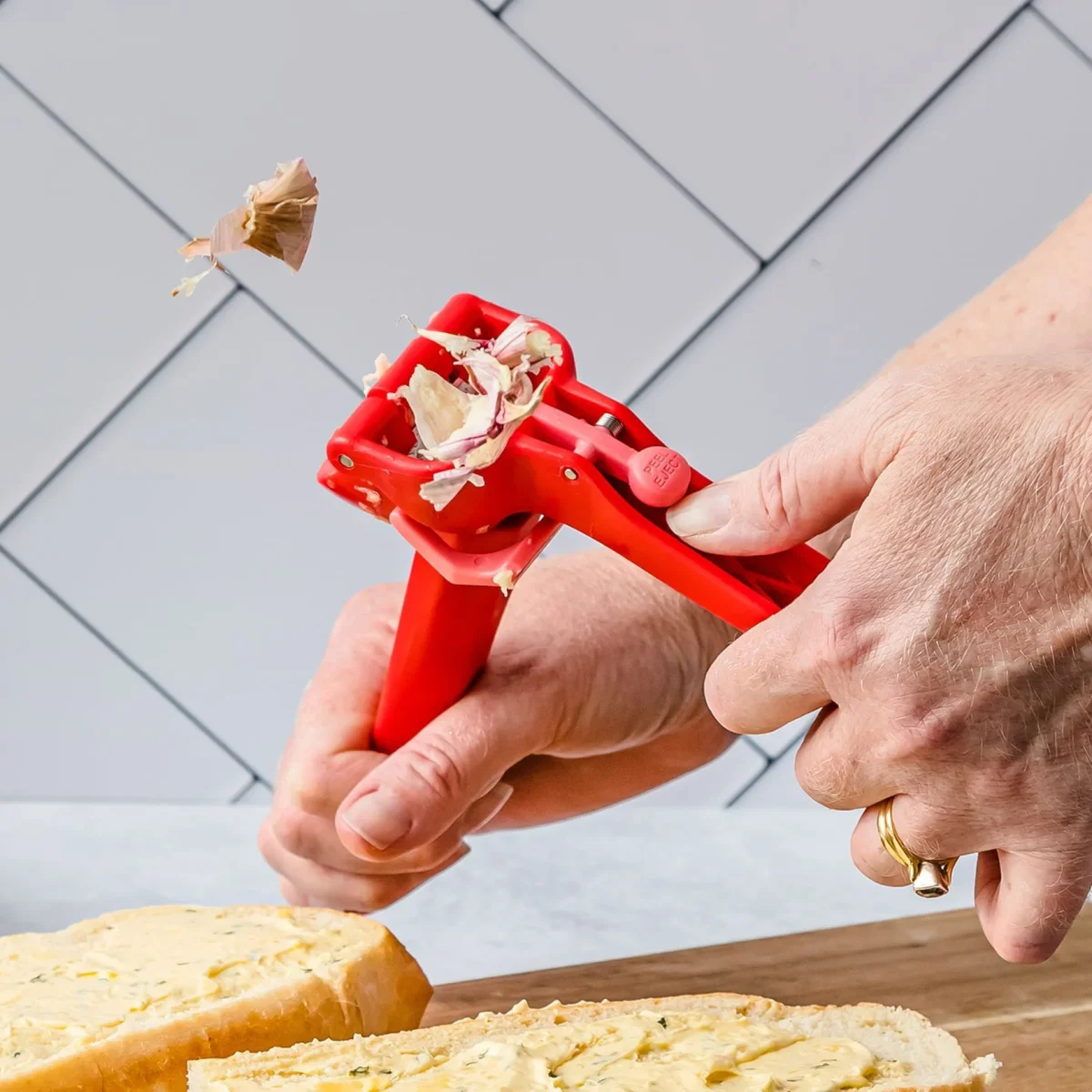Ontdek de revolutionaire Garject Lite knoflookpers: de slimme, zelfreinigende oplossing voor het moeiteloos persen van ongepelde knoflook. Geen geur aan je handen, geen verspilling, en met één druk op de knop werpt hij de schil uit. Gemaakt van duurzaam plastic, is deze ergonomisch ontworpen pers vaatwasmachinebestendig en voorzien van een handig ophangoog. Voeg in een handomdraai verse knoflook toe aan al je gerechten met de Garject Lite van Dreamfarm. Gemak en innovatie in één!