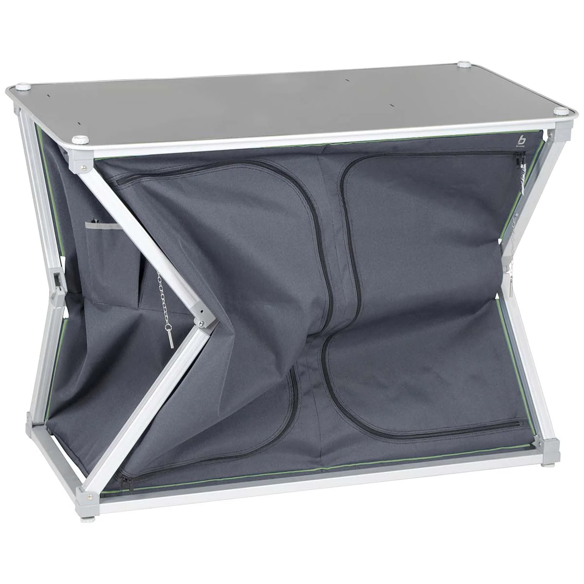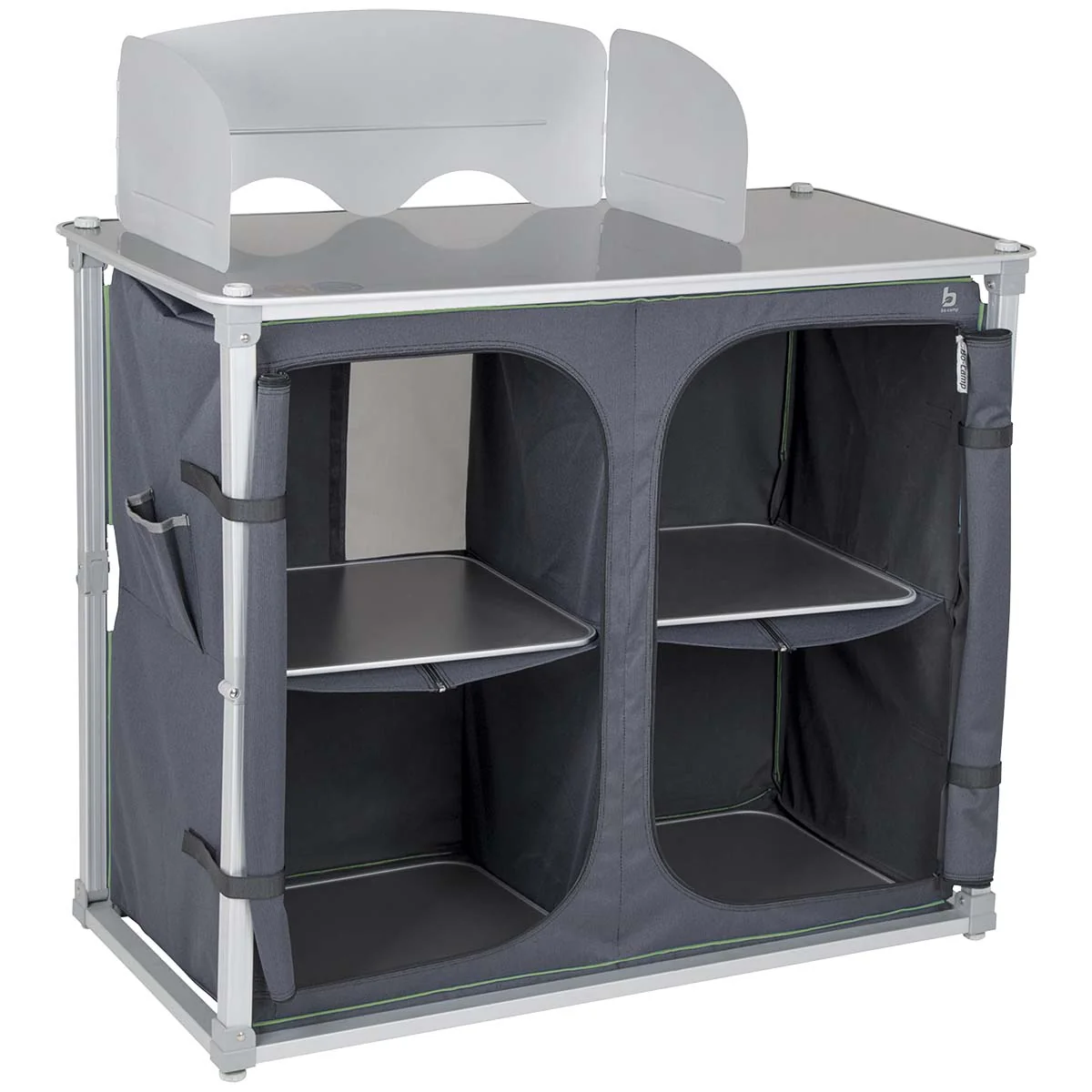 Koken op de camping wordt een feestje met dit slim ontworpen kookeiland. Dankzij de unieke constructie vouw je de kast in een paar seconden in en uit – zonder gedoe.