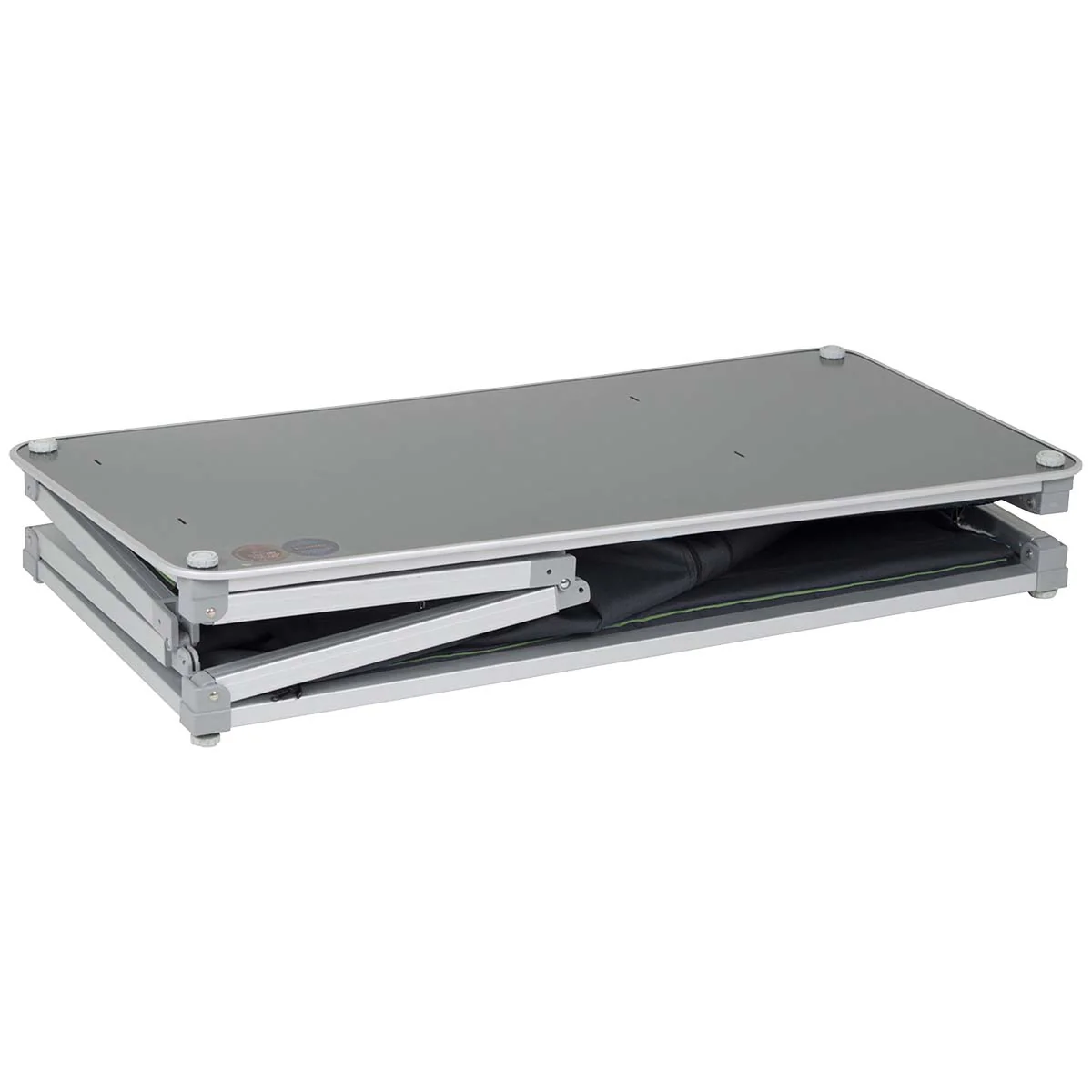 De stevige 600D polyester hoes bevat vier handige legplanken voor al je kookspullen. Het hittebestendige en watervaste blad (61,5 x 44 cm) is voorzien van een windscherm en biedt ruimte aan een 4-pits gaskomfoor – ideaal voor uitgebreid buiten koken.