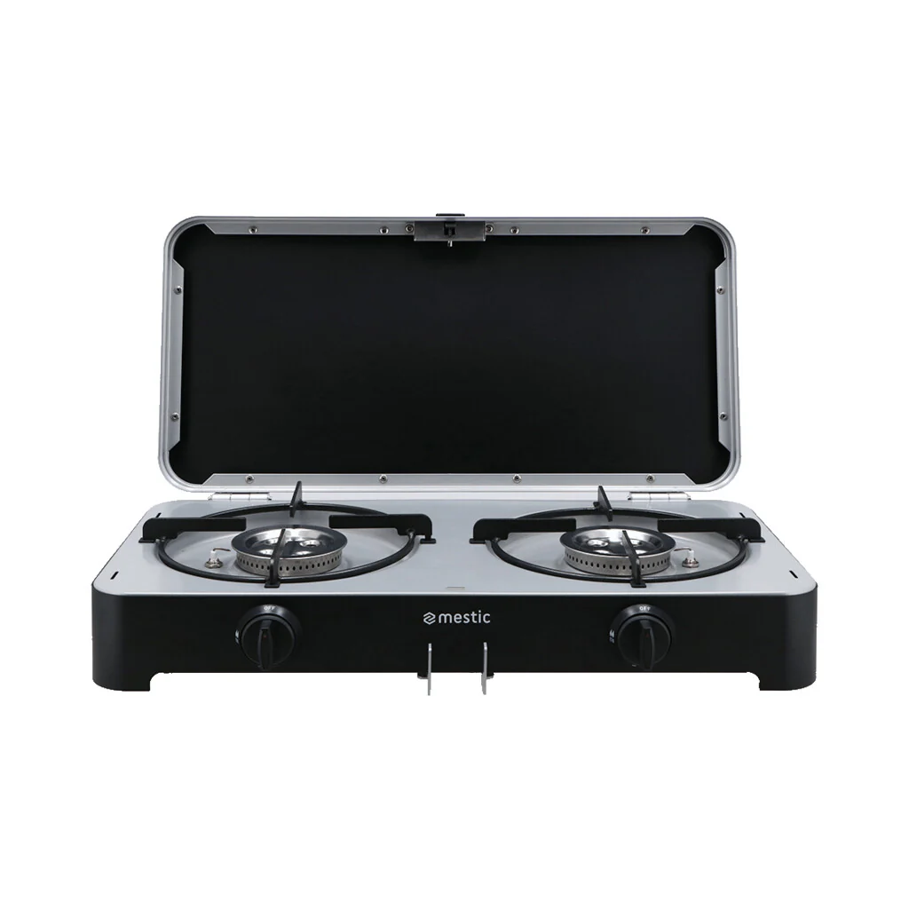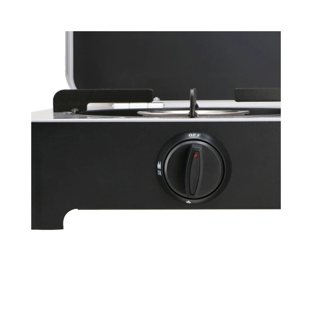 Compact en krachtig: deze gasgrill combineert koolstofstaal en aluminium voor een robuust ontwerp. Met een kookoppervlak van 55 x 27 cm en een vermogen van 4,4 kW (2 x 2,2 kW) bereid je moeiteloos heerlijke maaltijden. Voorzien van een piëzo-ontsteking met hendels en afneembare windschermen voor optimaal gebruiksgemak.