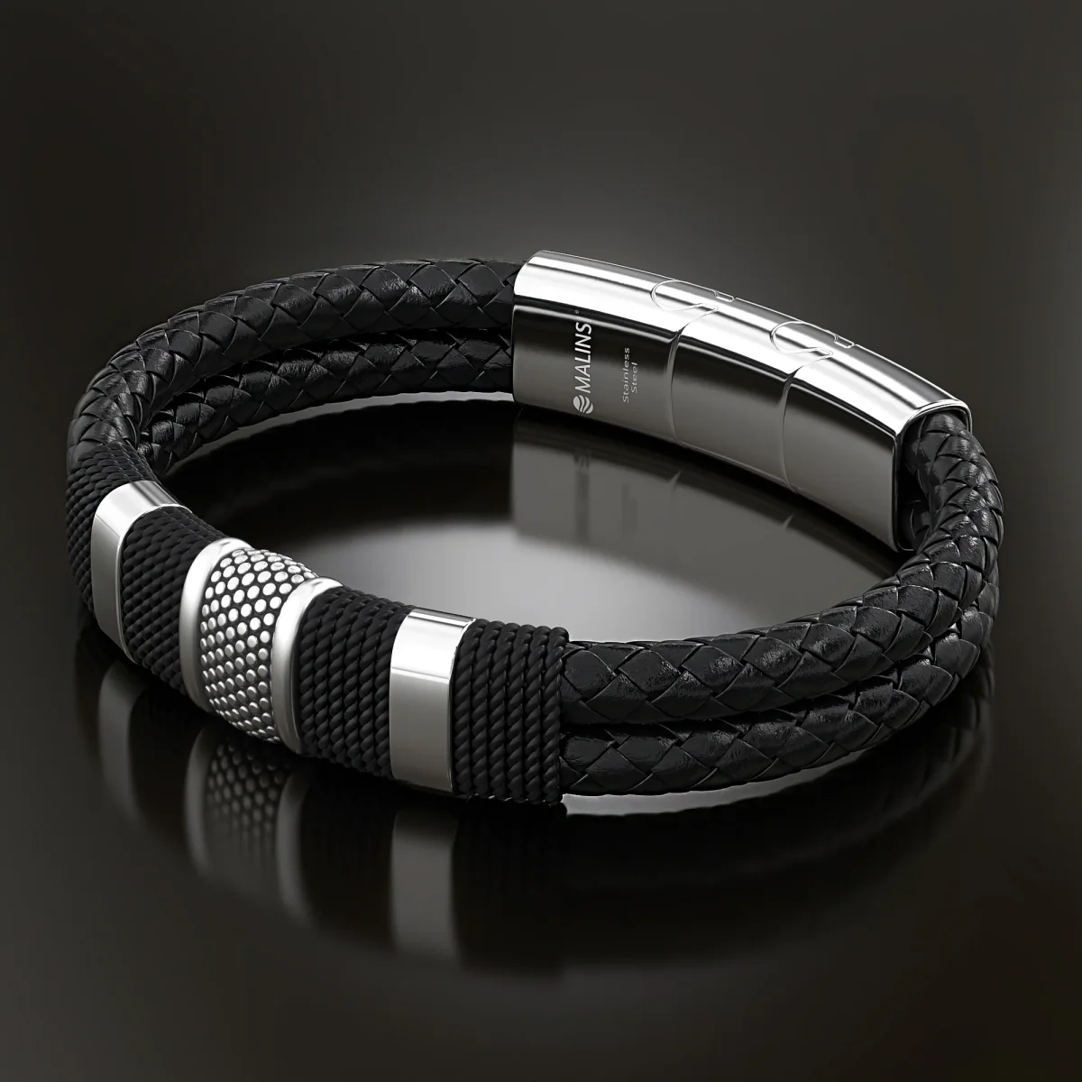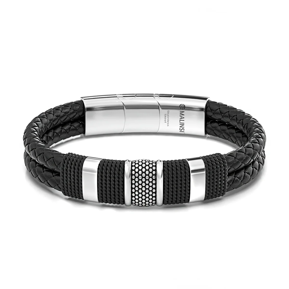Deze Malinsi heren armband met een glanzende sluiting is een accessoire die bij elke outfit past! Het is een stevige armband met geborstelde RVS (RoestVrijStaal) accenten verkrijgbaar in 3 kleuren. De Malinsi armbanden worden geleverd in een luxe fluwelen zakje, kies jouw of zijn lievelingskleuren uit en geniet van de look!