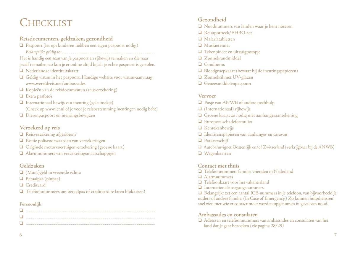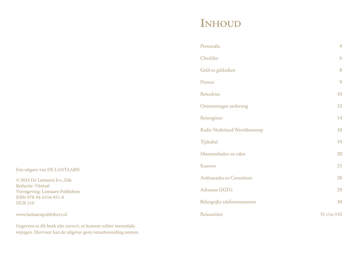 Dit prachtige Travel Reisdagboek is dé plek om al je reisverhalen en herinneringen vast te leggen, met sfeervol achtergrondpapier dat je direct in de stemming brengt. Naast ruimte om te schrijven, biedt het handige extra’s zoals een checklist, tijdtabel, kaarten, talen, munteenheden en belangrijke adressen, inclusief de contactgegevens van Nederlandse en Belgische ambassades.