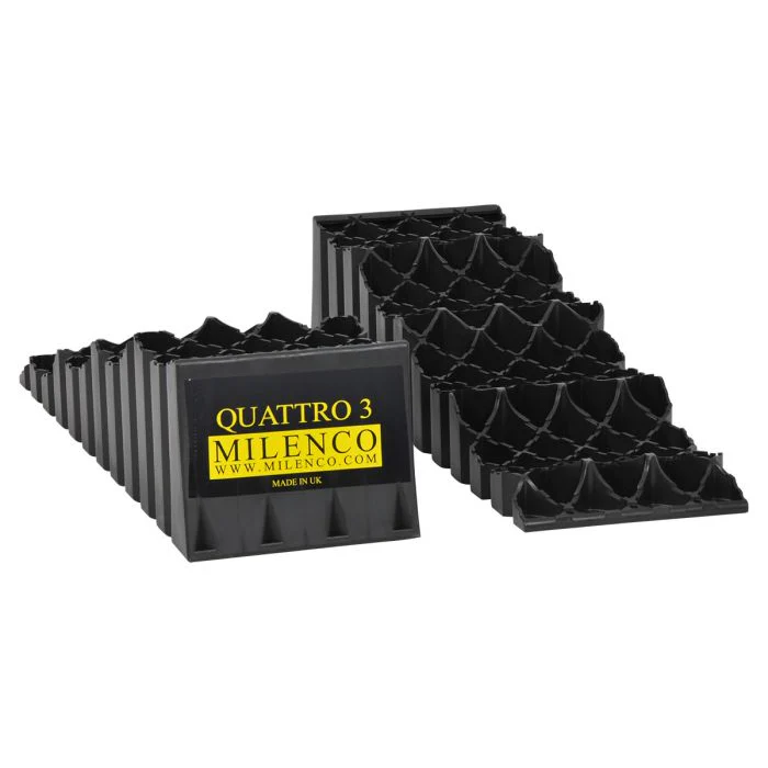 De Quattro van Milenco is de eerste viertraps leveller ter wereld. Hij is extreem robuust en breder dan andere modellen, wat het oprijden vergemakkelijkt en betere ondersteuning biedt aan de banden. Zo zet u uw camper met het grootste gemak waterpas op zijn plek.