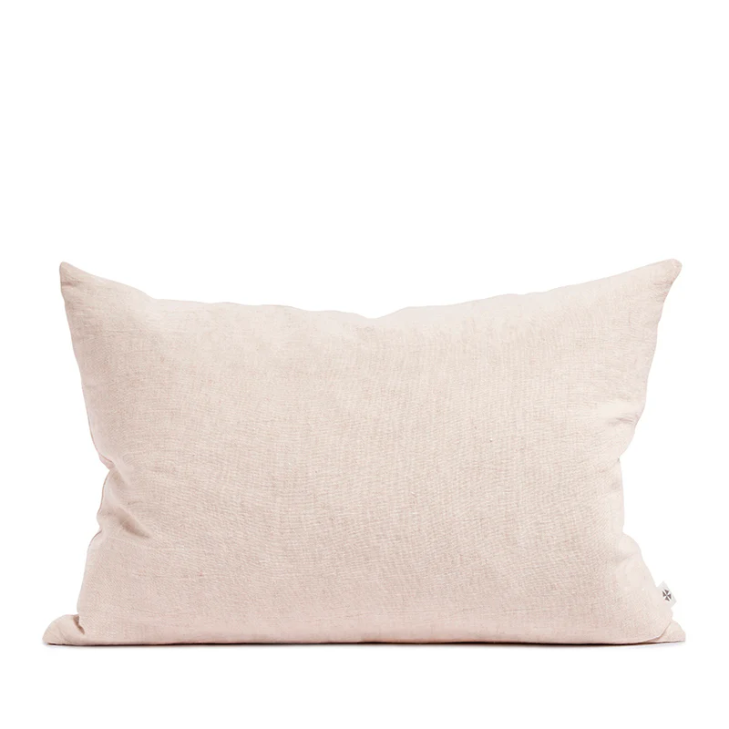 Super soft and comfortable linen cushion made of the best quality European linen in blush. Chambray woven with a blush and off white yarn. Combine this light powdery pink with cinnamon and hazel or with pink salt and terra to add softness to your home.