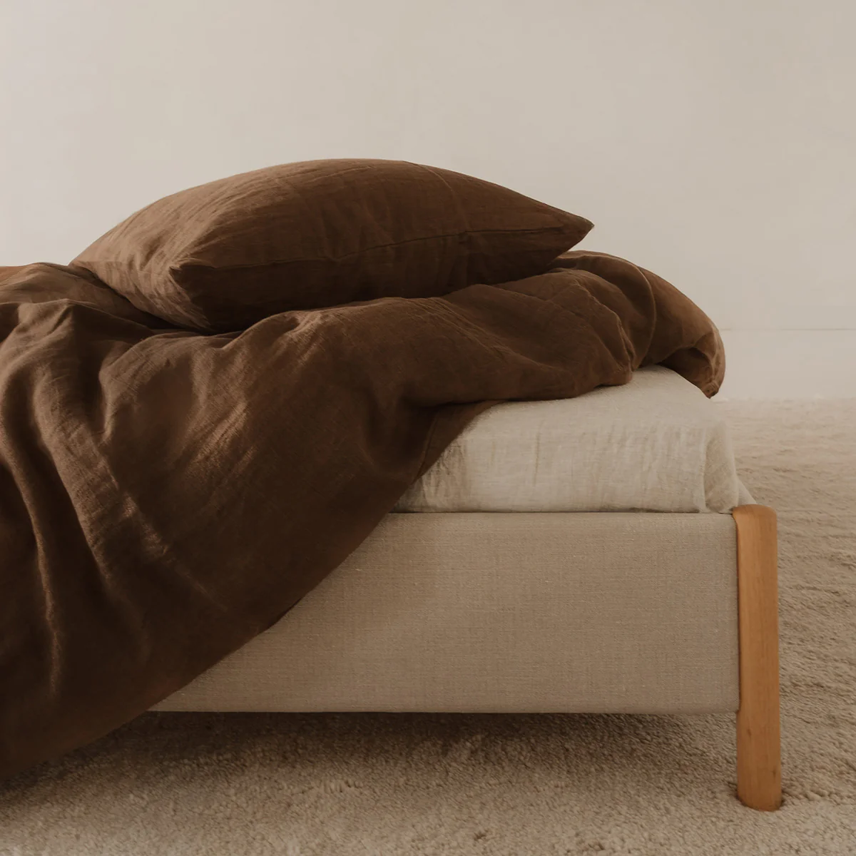 Linen duvet cover made of 100% pre-washed pure European linen in cocoa, a warm, deep brown shade.