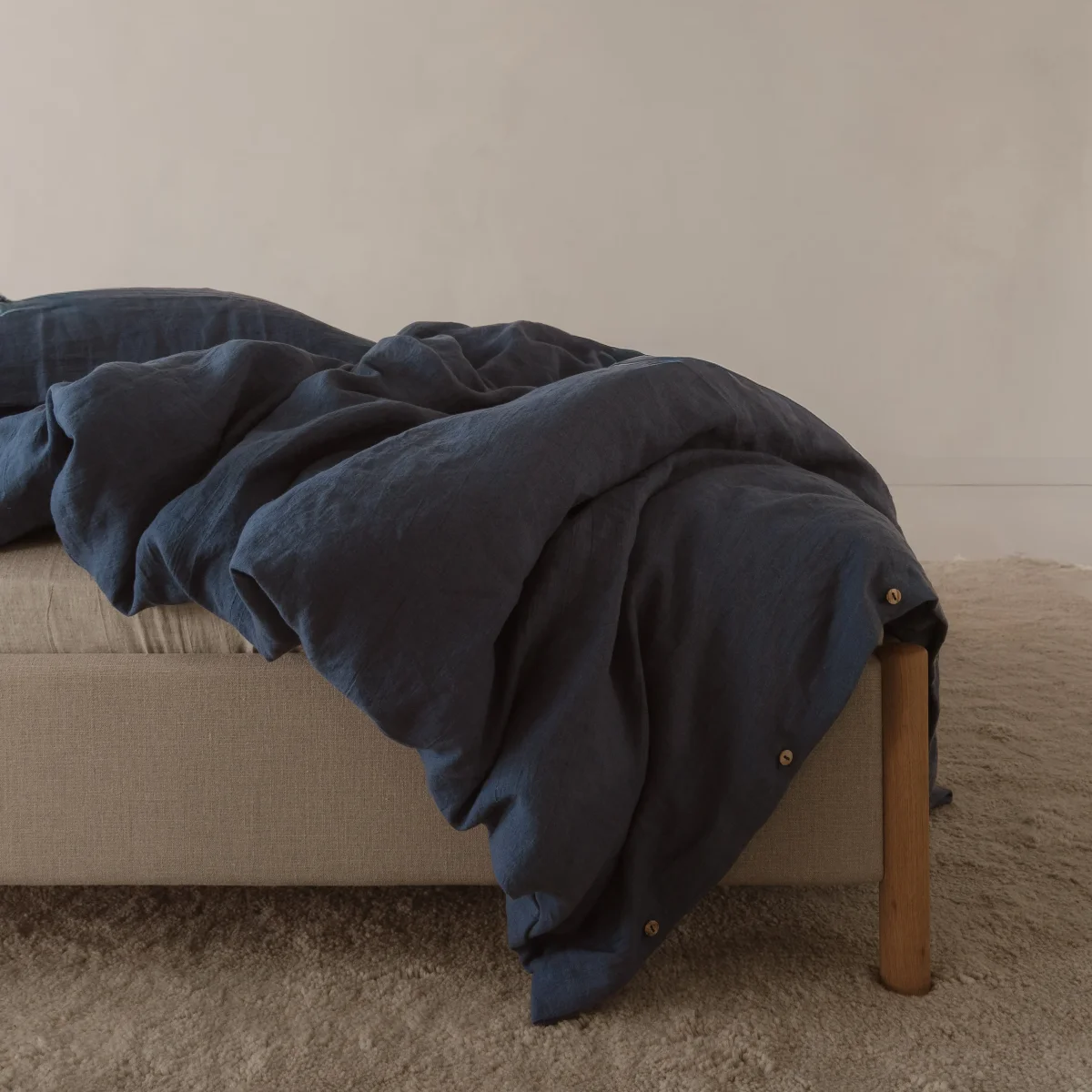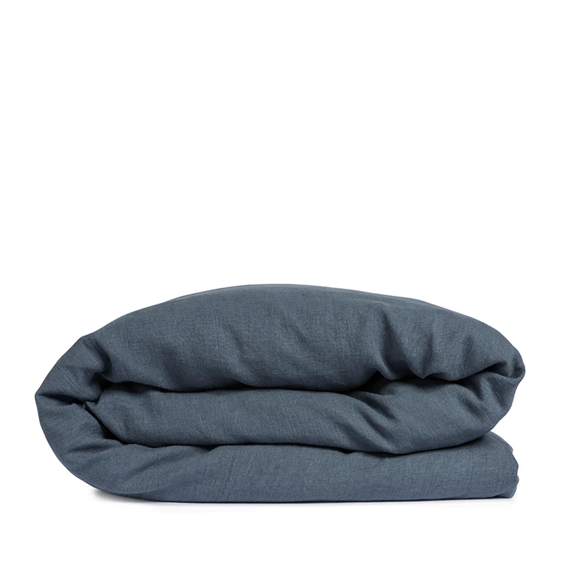 Linen duvet cover made of 100% pre-washed European linen in faded blue. Faded blue is a natural soft blue shade. Great on its own, or when combined with indigo, or natural shades like flax and sea shell.