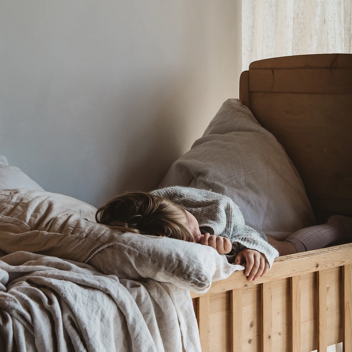 Linen duvet cover for kids, handmade of 100% pre-washed pure European linen and available in all our linen colors. Beautiful sustainable crafted with respect for the earth. All you need for a good night’s sleep. The soft linen fabric will keep your little one cool in the summer and retains warmth when it is cold. Linen is hypo allergenic and antibacterial, the ideal fabric for your kids bedlinen. The linen fabrics are high quality chambray woven, which gives it depth in colour and character. Available with wooden buttons, a tuck in flap over the full width of the duvet cover, or a bottle neck for closure.