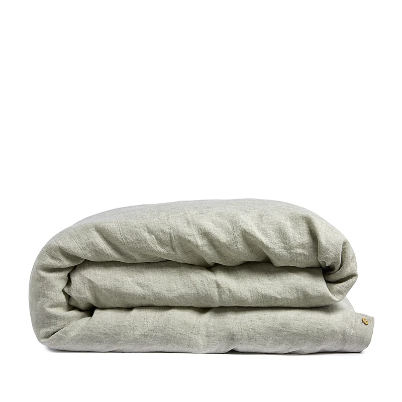 Linen duvet cover made of 100% pre-washed European linen in sage. A soft, natural tone, easy going and a favourite. Depending on the light and mix of colours this shade appears to be more green or grey.