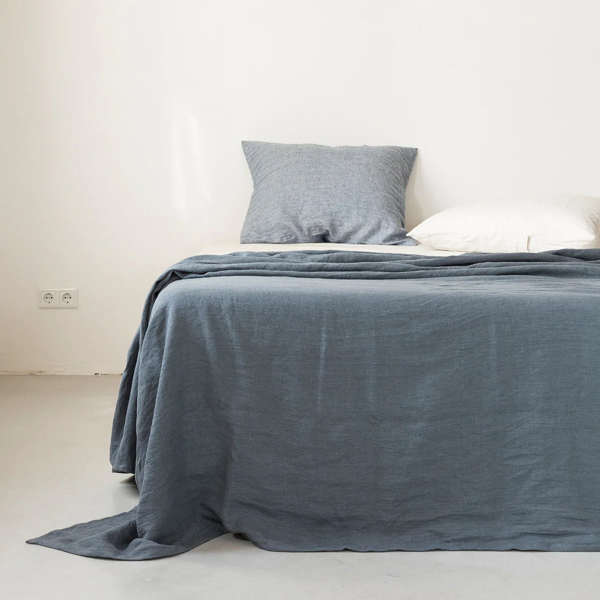 Linen flat sheet made of 100% pre-washed linen in faded blue. Great on its own, or when combined with indigo, or natural shades like flax and sea shell.