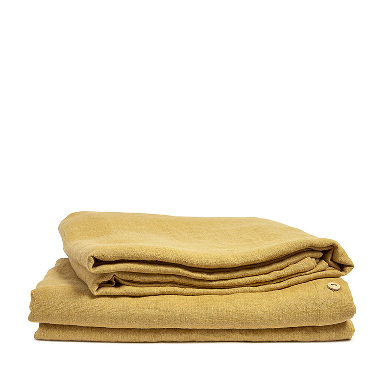 Linen flat sheet made of 100% pre-washed linen in honey. Honey is a warm, faded yellow tone that reminds us of endless Indian summers.