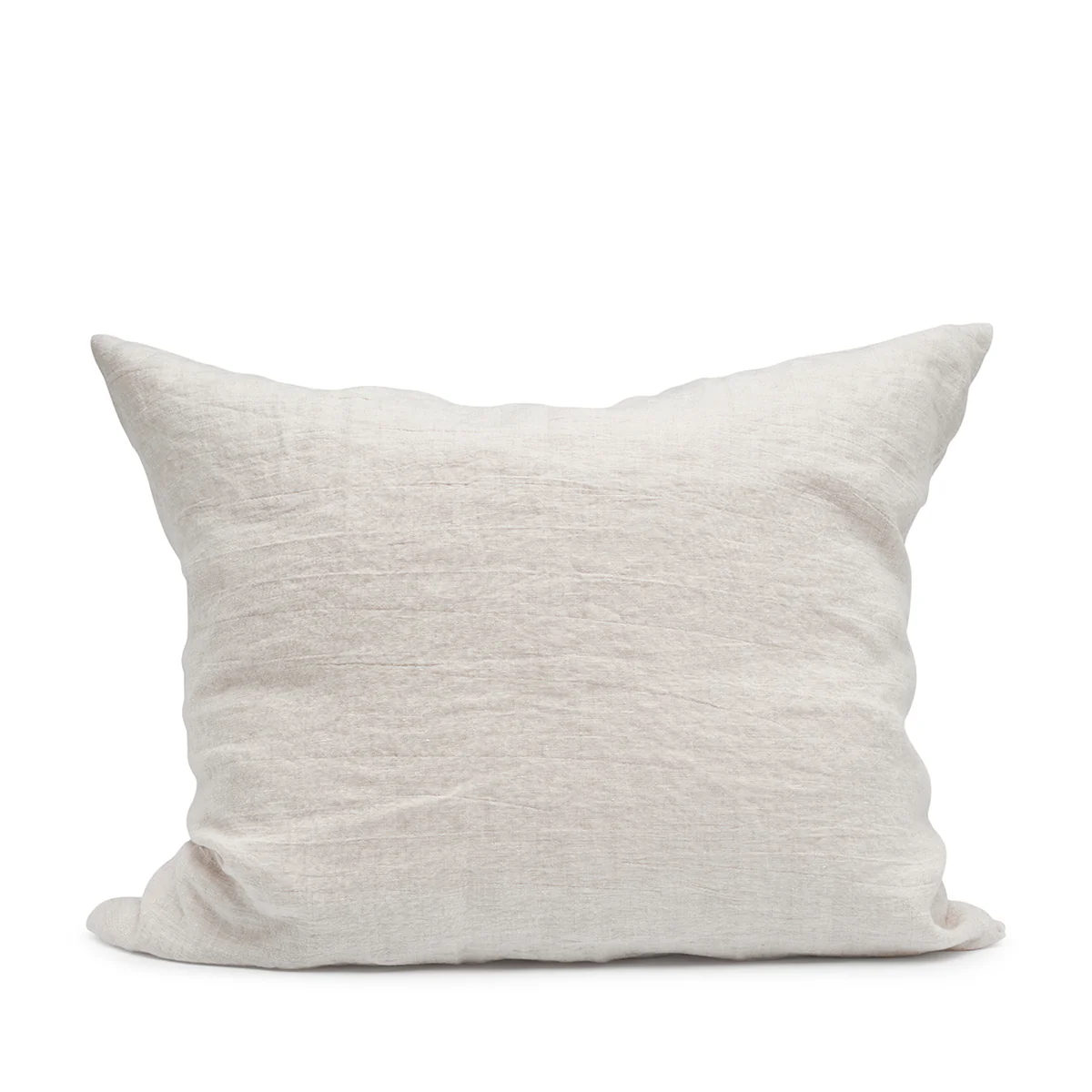 Linen pillow case made of 100% pre-washed linen in alabaster. A chambray woven with creamy beige and off white yarn. Alabaster is a subtle, light neutral shade with a pale pink undertone. We make our pillow cases with an envelope closure on the back.