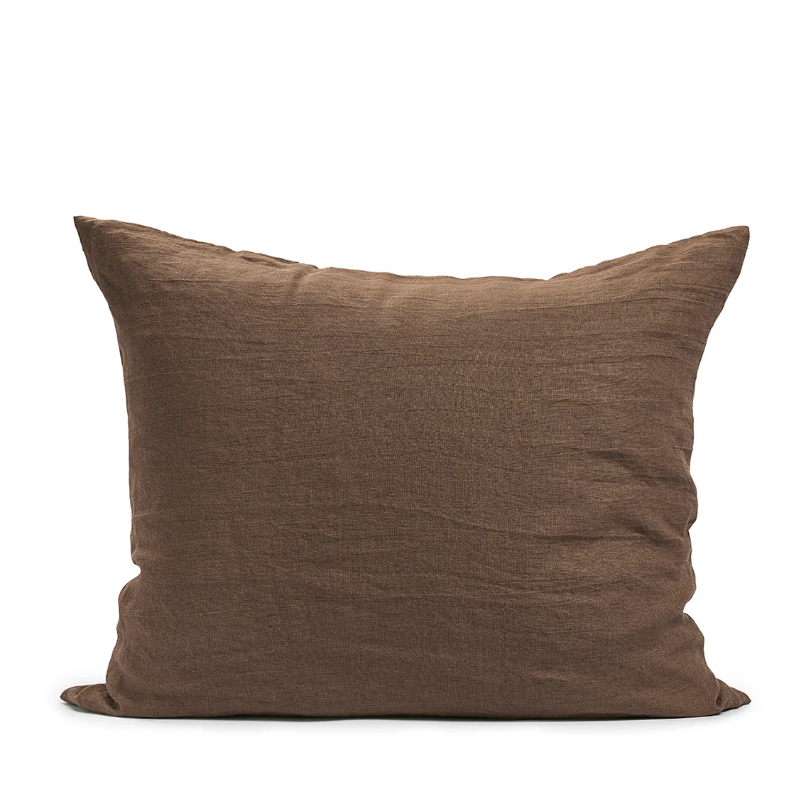 Linen pillow case made of 100% pre-washed linen in cocoa, a deep warm brown shade. Our collection of bedlinen is perfect if you want to create a pure, relaxed ambiance in your bedroom and value a good night’s sleep. The soft linen fabric will keep you cool in the summer and retains warmth when it is cold. We make our pillow cases with an envelope closure on the back.