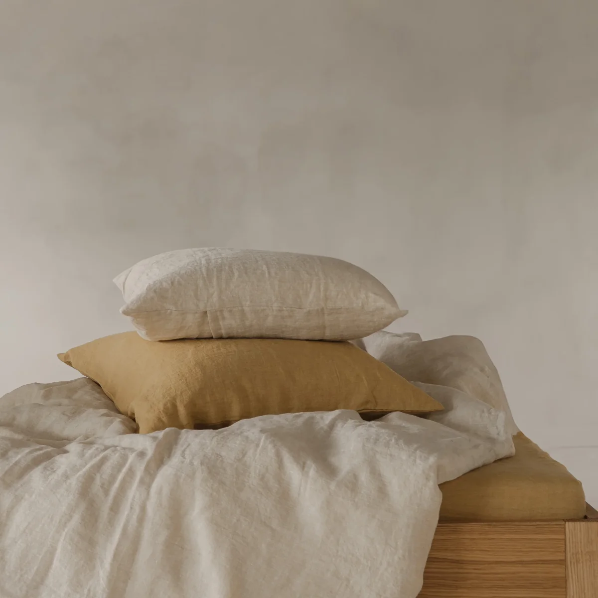 Linen pillow case made of 100% pre-washed linen in honey. Honey is a warm, faded yellow tone that reminds us of endless Indian summers. We make our pillow cases with an envelope closure on the back.