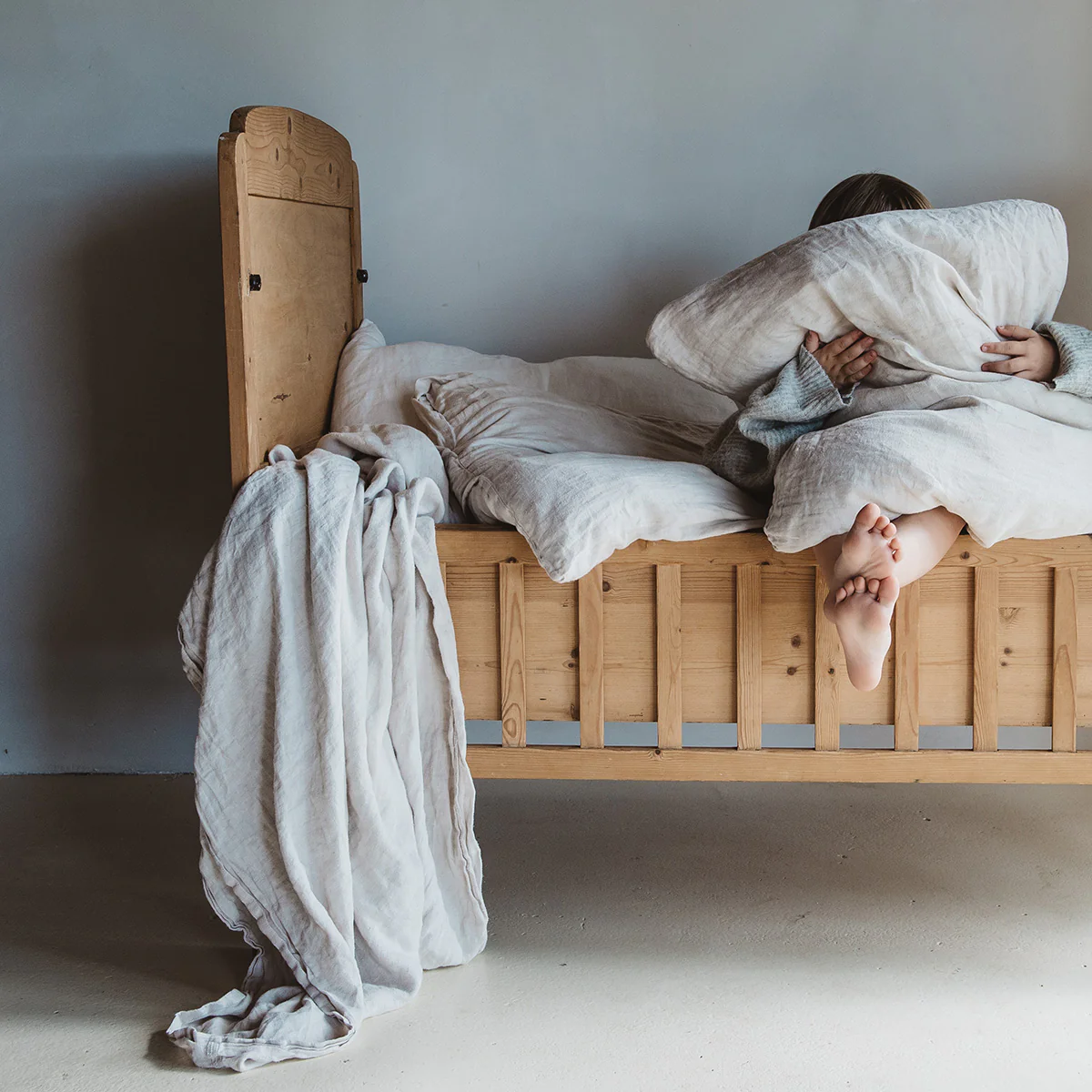 Linen fitted sheet for kids made of 100% pre-washed linen.