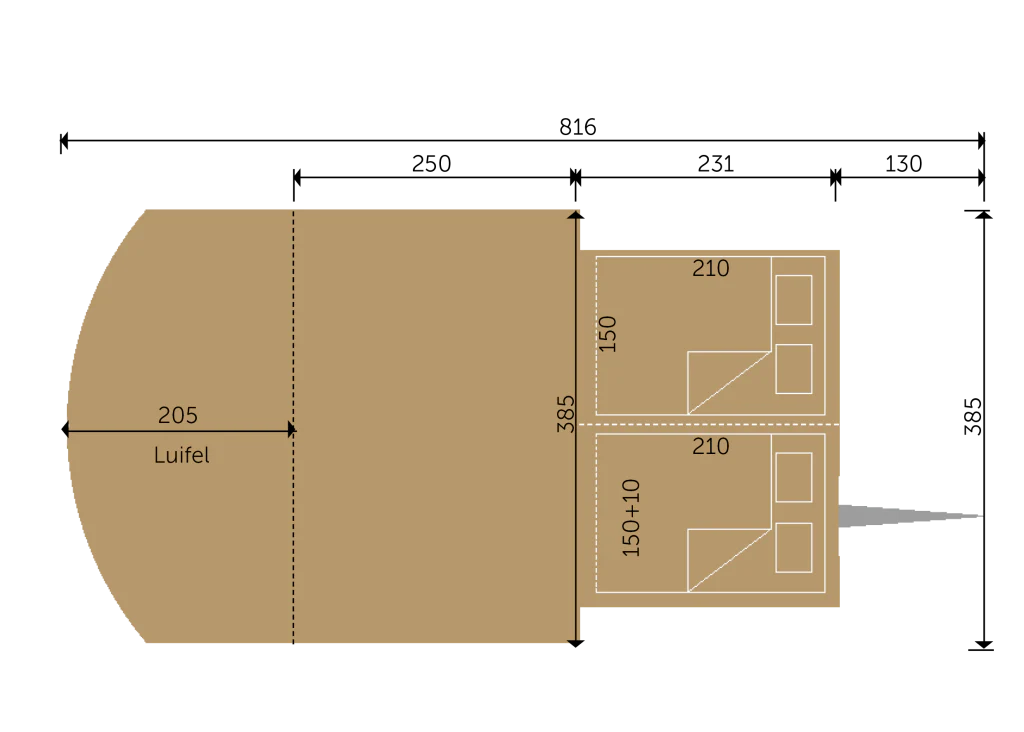 Afmetingen: 200 x 385cm