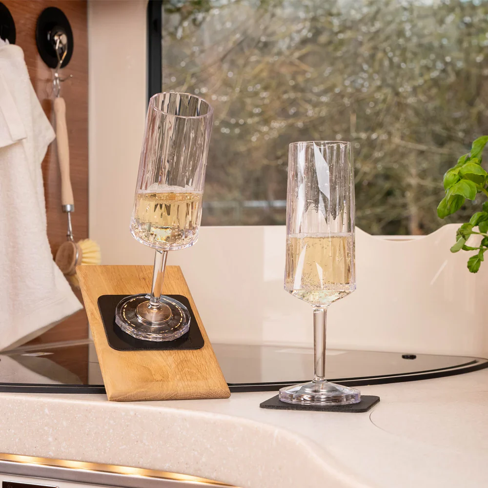 Deze stevige magnetische kunststofglazen blijven perfect op hun plaats — zelfs als de camper of caravan beweegt.