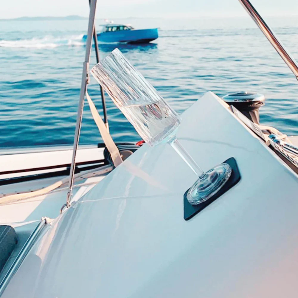 De krachtverhouding tussen de magneetglazen en de metalen nano-gelpads is perfect uitgebalanceerd: de glazen blijven stevig staan, maar kunnen toch gemakkelijk van de pads worden genomen om te drinken.