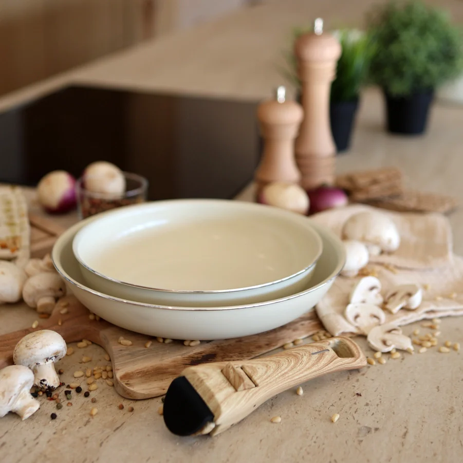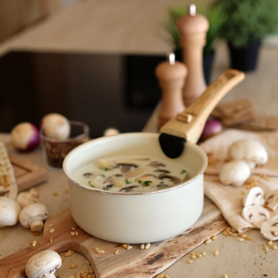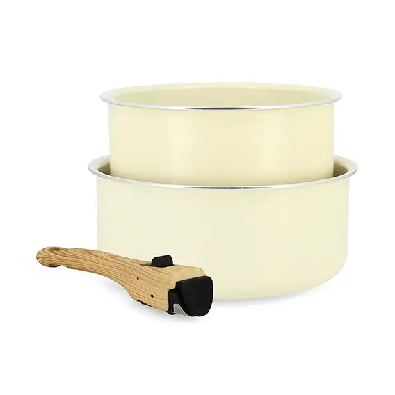 Dankzij de duurzame antiaanbaklaag blijven gerechten niet plakken en is schoonmaken zo gebeurd. Ideaal tijdens het kamperen, waar gemak telt. De afneembare handgreep met donkere houtafwerking zorgt niet alleen voor een elegante uitstraling, maar maakt de set ook extra compact om op te bergen in je camper of caravan.