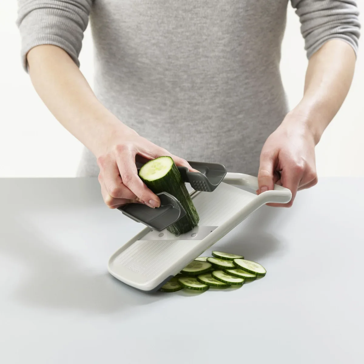 De Duo Multi Grip Mandoline is de ideale keukenhulp voor moeiteloos koken onderweg, ontworpen voor veiligheid en veelzijdigheid. Het komt met een innovatief voedselhulpstuk dat drie gripopties biedt voor een breed scala aan ingrediënten, van grote aardappelen tot kleine teentjes knoflook, zonder risico op snijwonden. Het compacte design, voorzien van een anti-slipuiteinde en een speciale vergrendeling, zorgt voor stabiliteit en veilige opslag. Ideaal voor de beperkte ruimte in campers en eenvoudig met de hand te wassen. Met de Duo mandoline genieten camperchefs van gemak en precisie, zelfs onderweg.