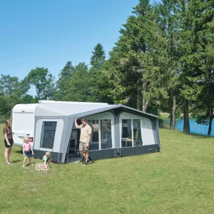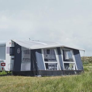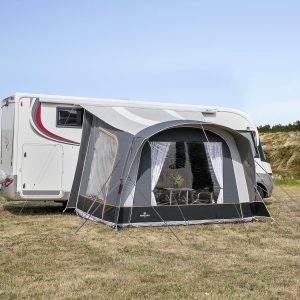 Dankzij de grote ramen geniet je van natuurlijk licht en frisse lucht, terwijl de achterdeur en twee zijdeuren ook als luifel kunnen worden opgezet voor nog meer beschutting.