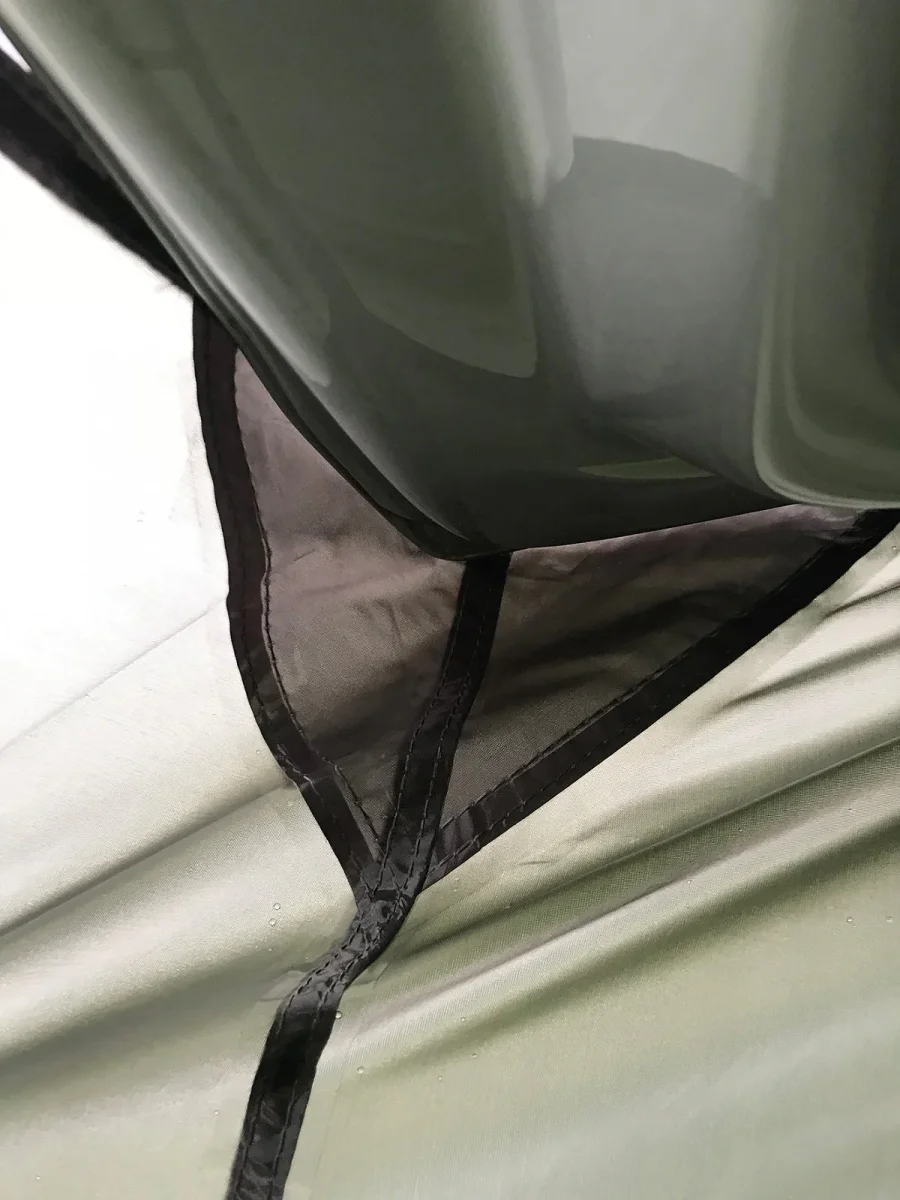 Je schuift de tent eenvoudig over de achterklep en spant hem strak naar beneden – geen stokken nodig, compact op te bergen en snel gemonteerd. Ideaal voor gebruik op kleinere campings of bij wildkampeerplekken.