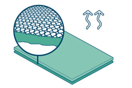 Honingraatmatras voor onder de schuimmatras waardoor condensatie kan ontsnappen bij lage temperaturen.