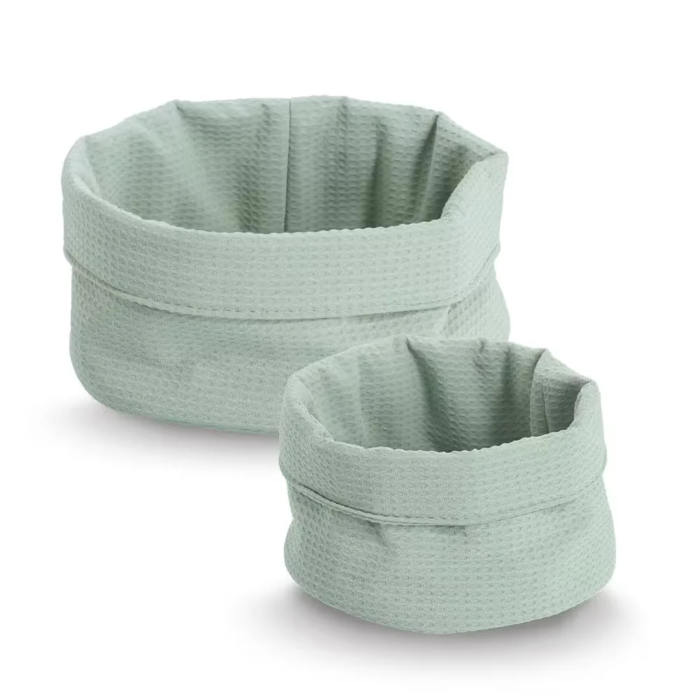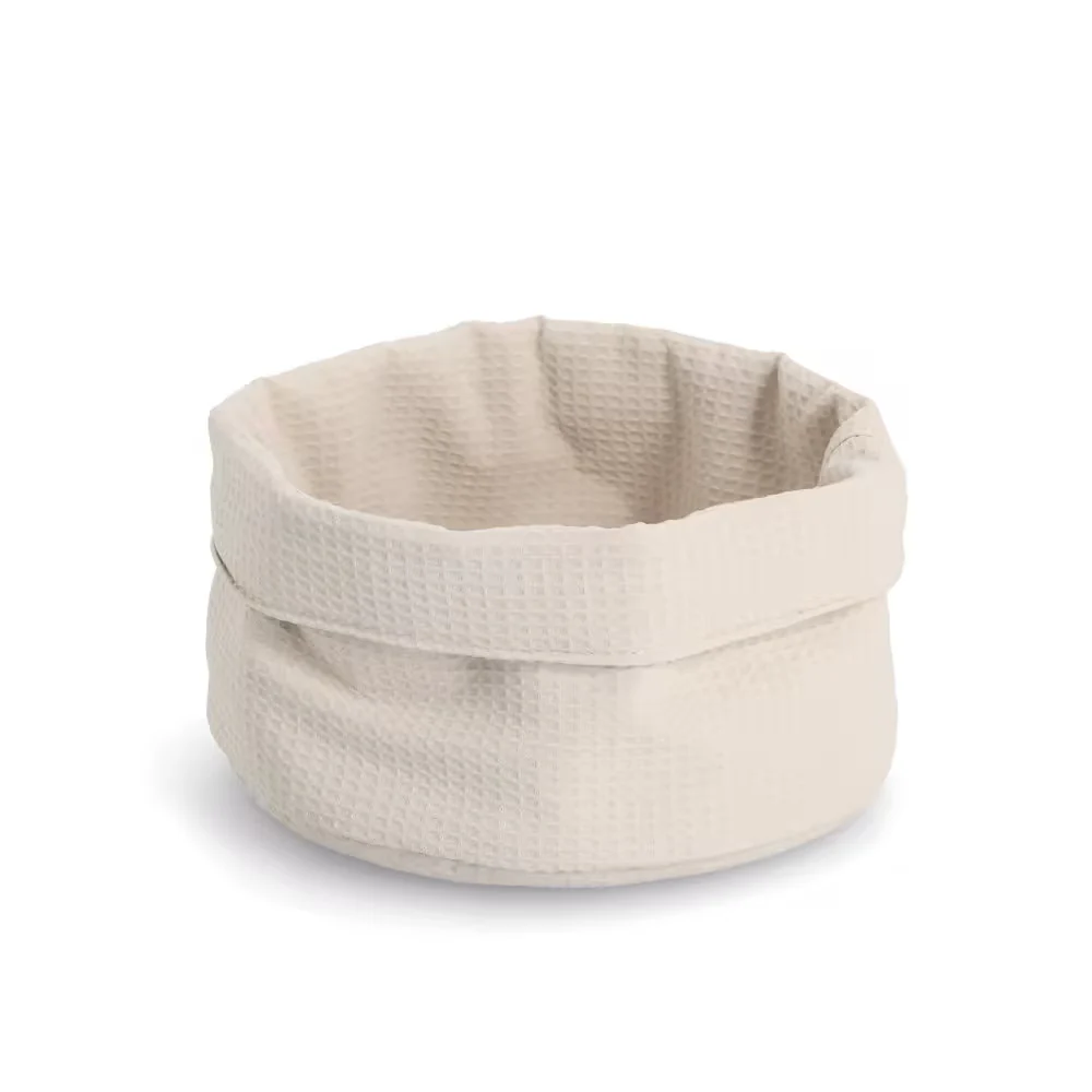 De zachte maar stevige waffle piqué stof geeft de mand een warme en natuurlijke uitstraling die perfect past bij een gezellige kampeerplek. Plaats hem in een kastje van je camper, op een plank in de caravan of op tafel in de voortent.
