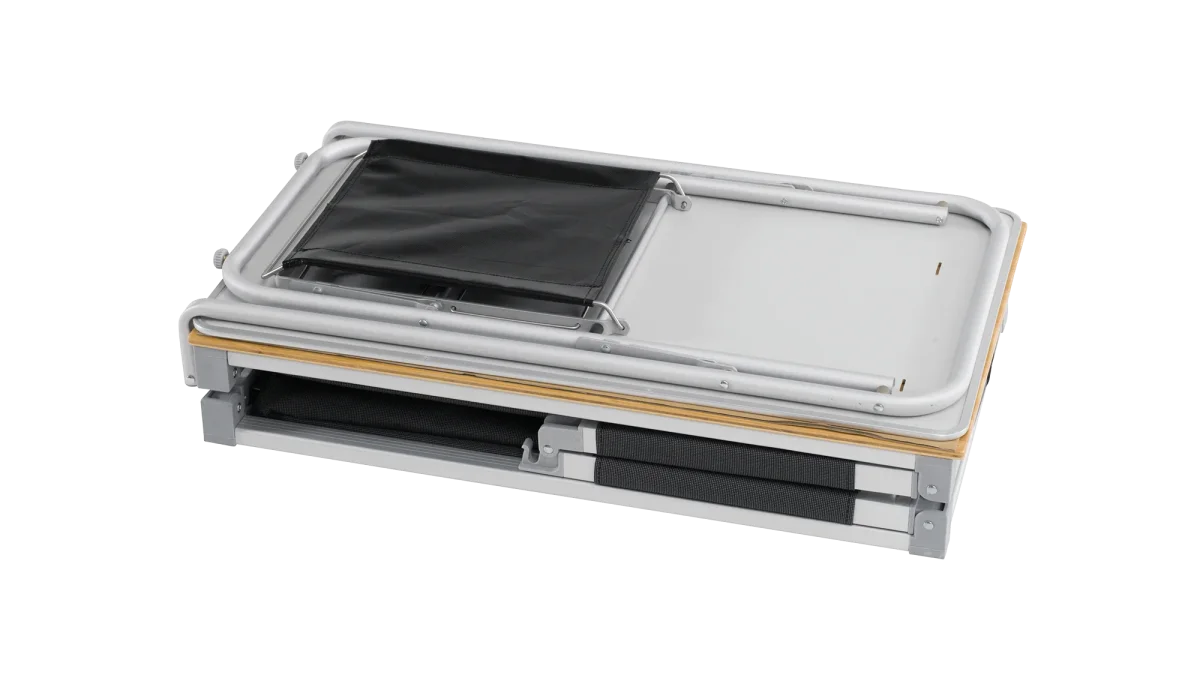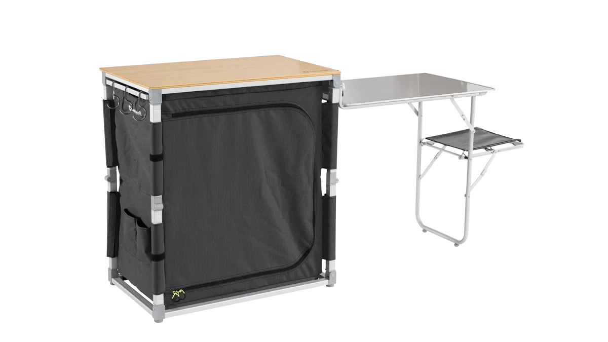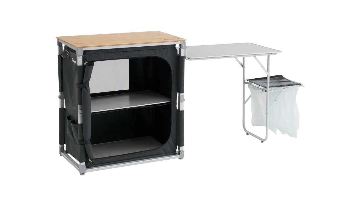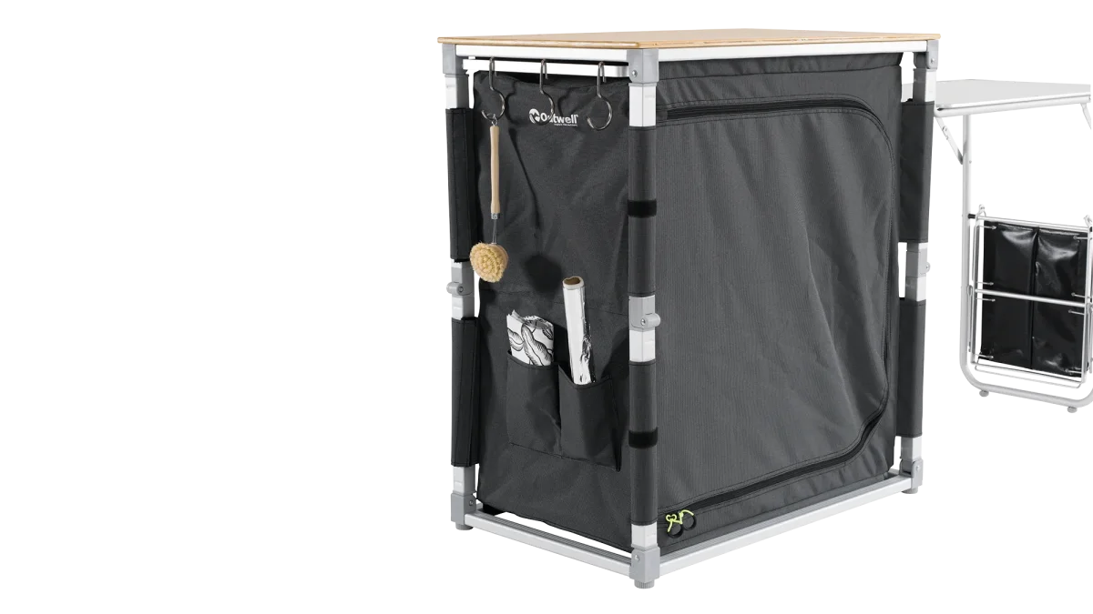 De Padres Kitchen Table & Side Unit is dé oplossing voor wie ook op de camping graag makkelijk en georganiseerd kookt. Deze slimme mobiele keuken maakt het super eenvoudig om overal te snijden, koken, afwassen en opruimen — waar je ook staat.