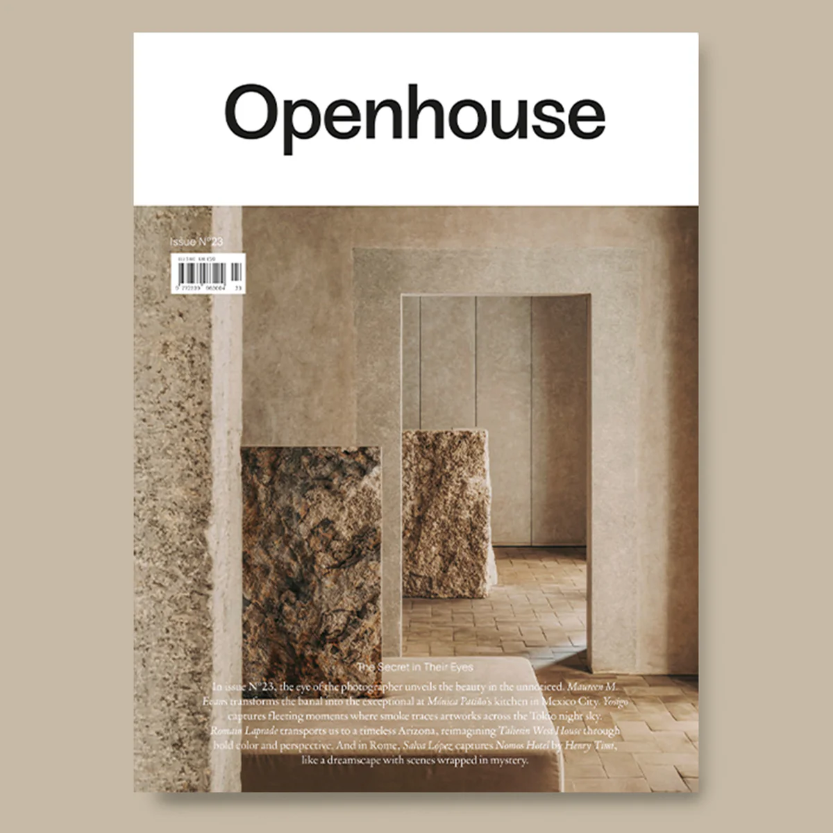 “Through the lens of each artist, the ordinary becomes extraordinary. In Mexico City, Maureen M. Evans elevates the everyday at Mónica Patiño’s kitchen, revealing poetry in the mundane. Yosigo freezes ephemeral instants as tendrils of smoke sketch ghostly art across Tokyo’s nightscape. Romain Laprade reimagines Taliesin West House in Arizona, where bold hues and striking angles carve out a timeless reverie. Meanwhile in Rome, Salva López turns Nomos Hotel by Henry Timi into a hauntingly beautiful mirage—each frame steeped in quiet mystery.”