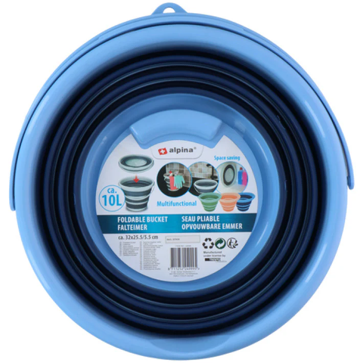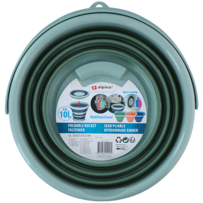 Opvouwbare emmer van 10 liter in 4 kleuren.