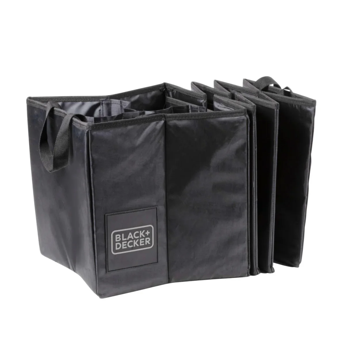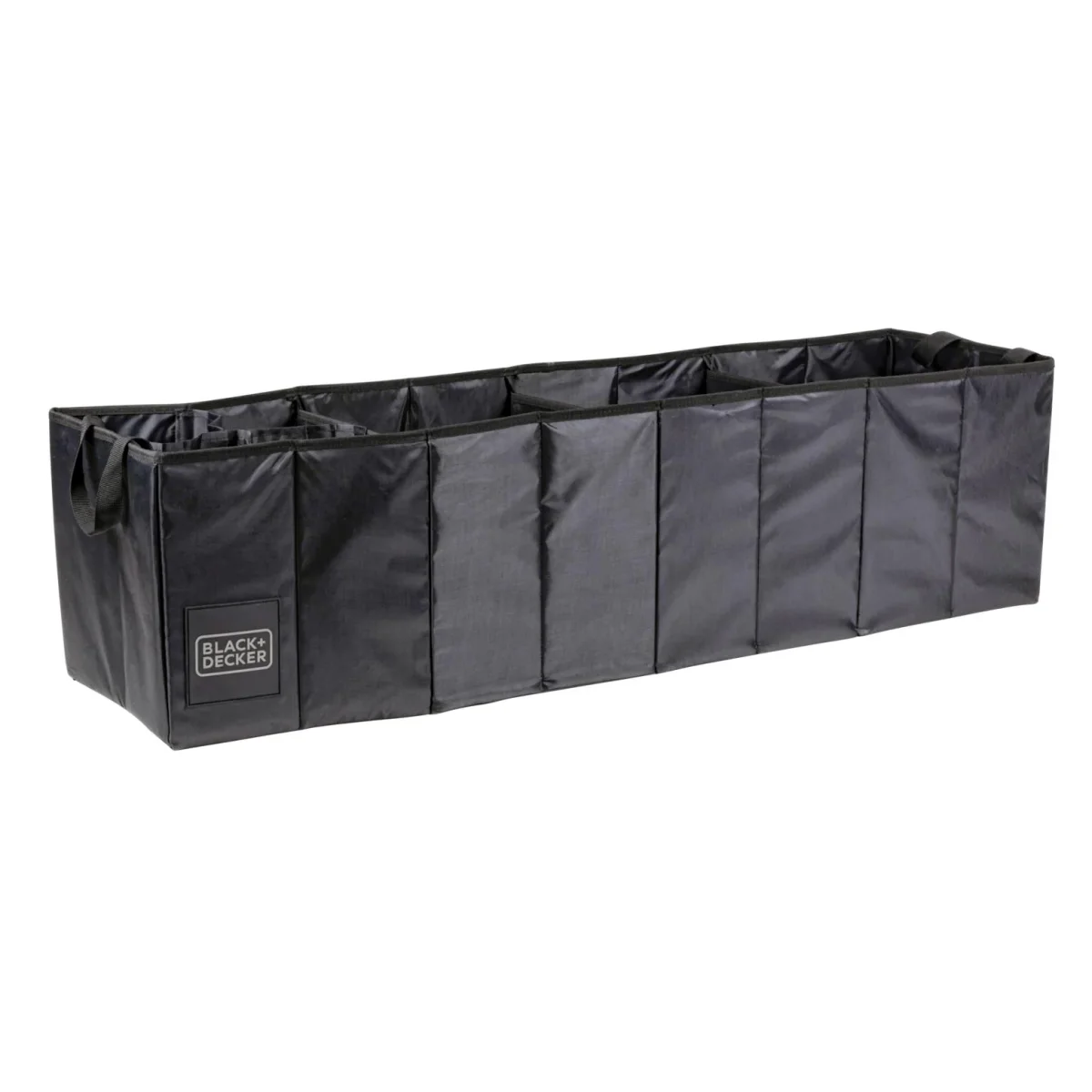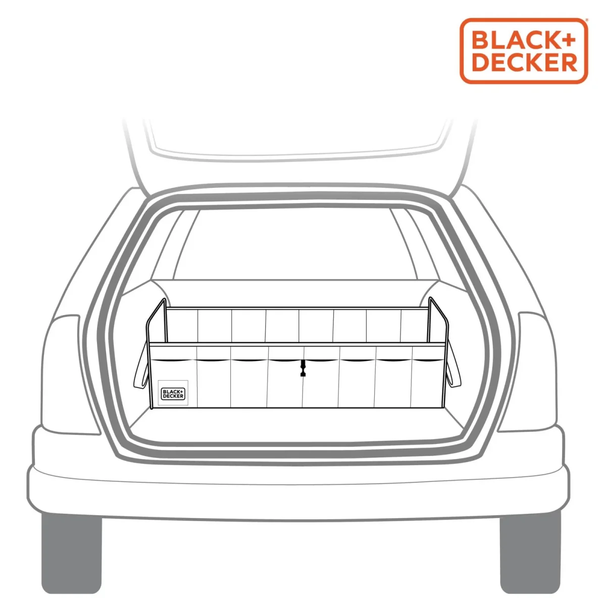 Houd je kofferbak georganiseerd en overzichtelijk met de opvouwbare kofferbak organizer van BLACK+DECKER, ideaal voor campers, caravans en tenttrips. Met meerdere compartimenten in verschillende groottes biedt deze organizer de perfecte oplossing om al je spullen netjes op te bergen. Wanneer je hem niet nodig hebt, vouw je hem eenvoudig op voor ruimtebesparing. De ideale partner voor een georganiseerde en stressvrije reis!