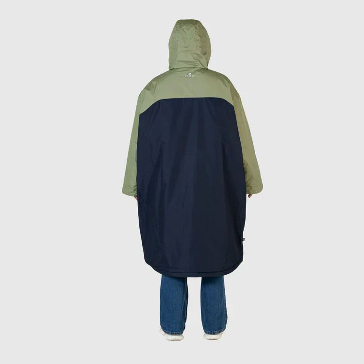 De body en de mouwen zijn oversized, zodat je je gemakkelijk kunt omkleden of de jas over je wetsuit kunt dragen als extra bescherming.