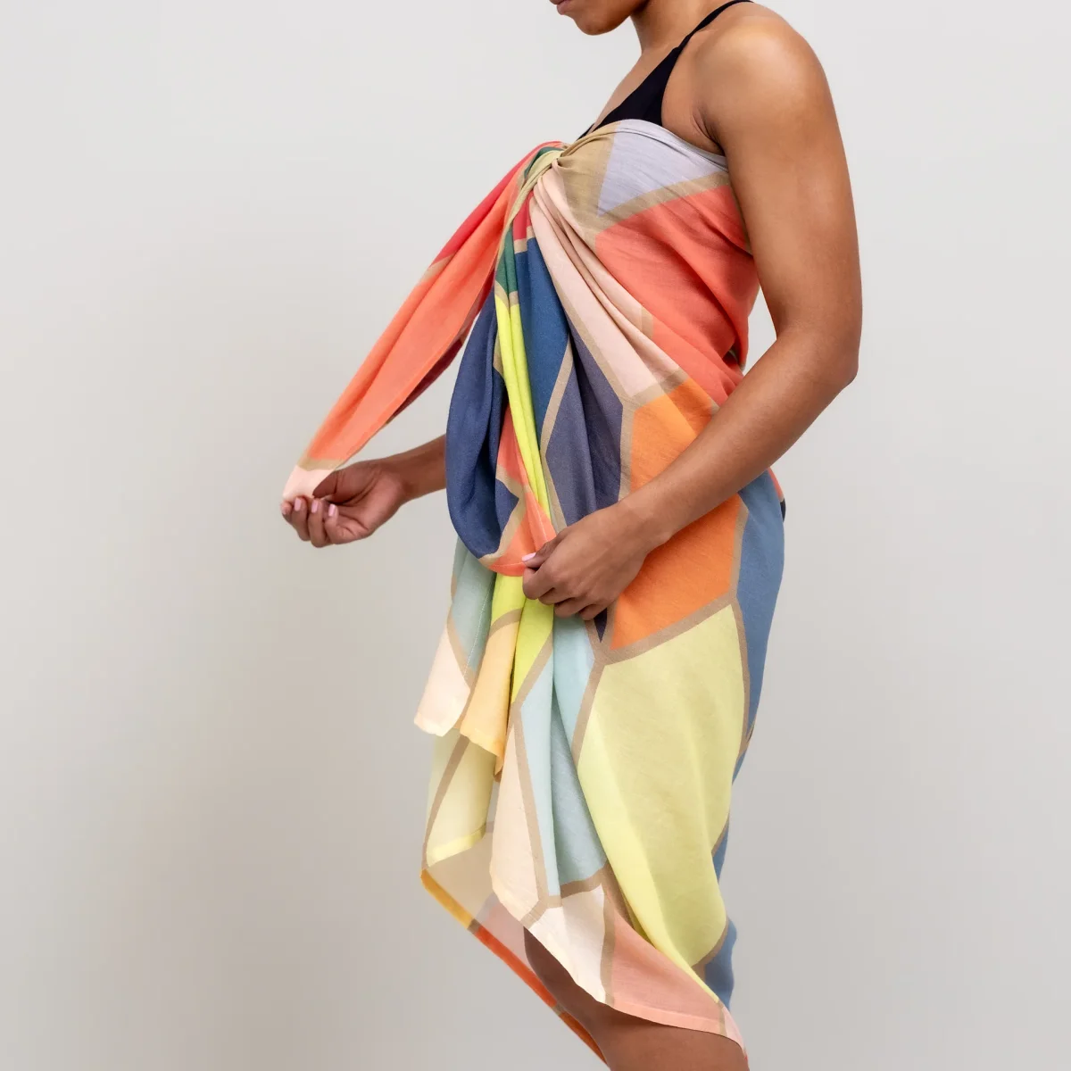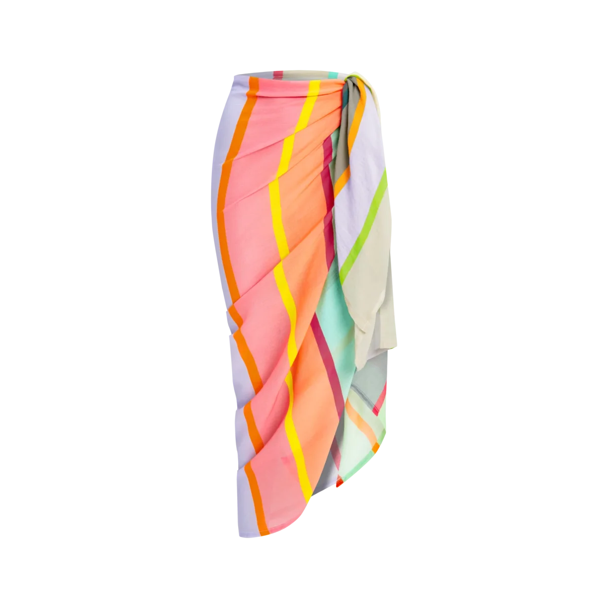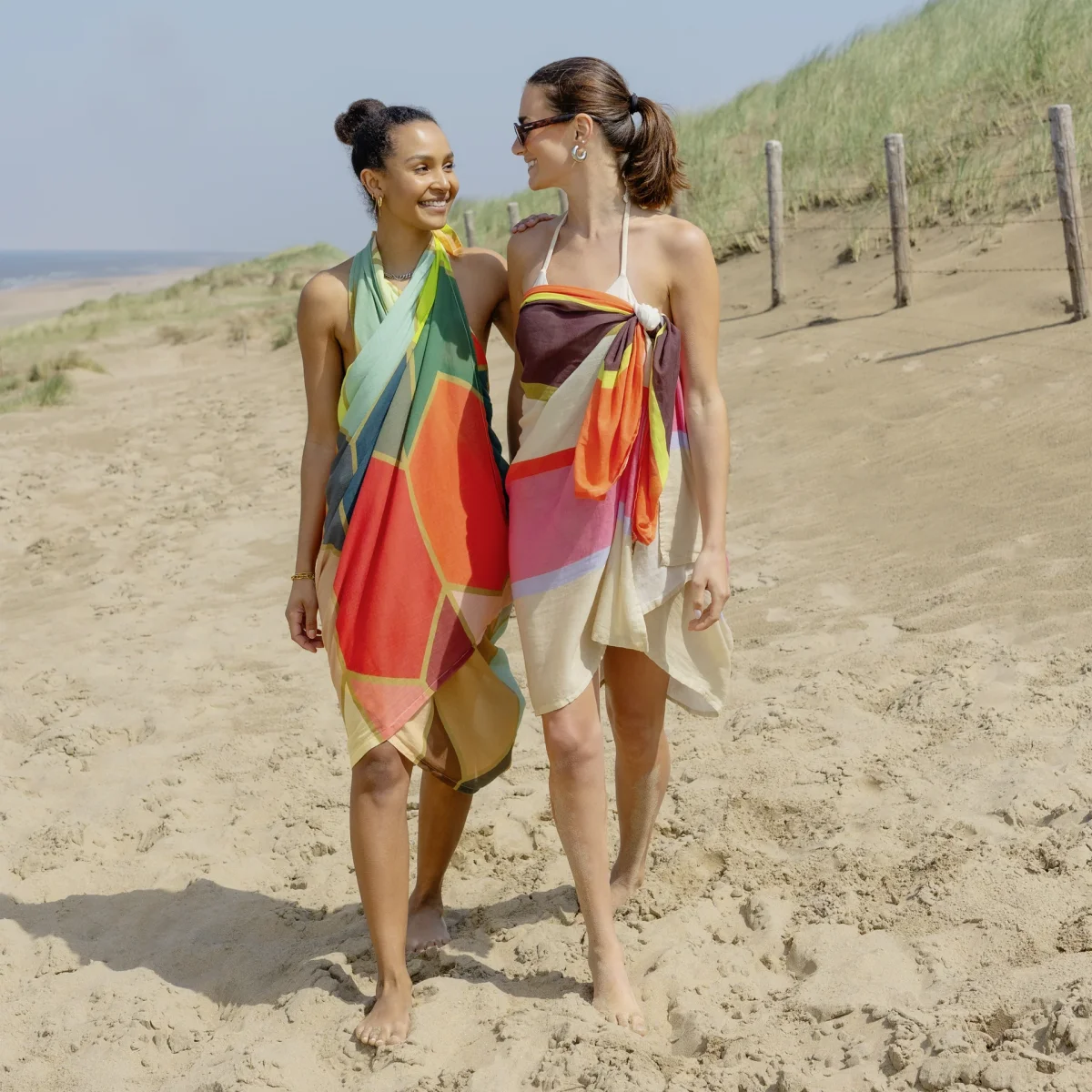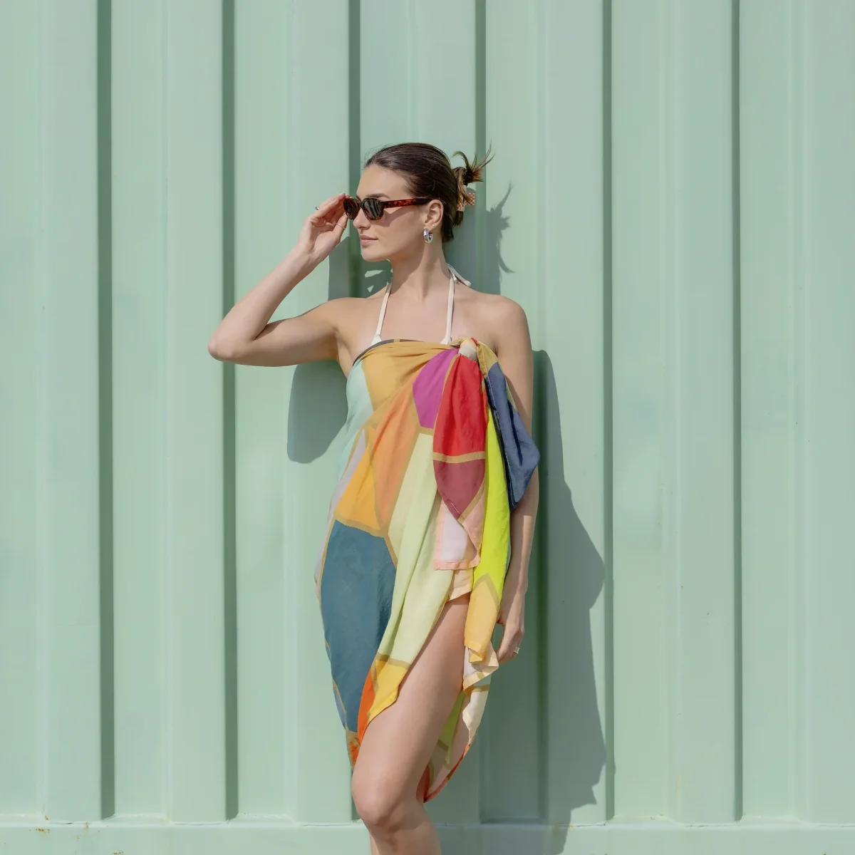 Draag hem als luchtige maxirok, elegante halterjurk of trendy top – deze sjaal past zich moeiteloos aan jouw moment aan. Dankzij de frisse kleuren en soepele stof straalt hij pure zomerse vibes uit.