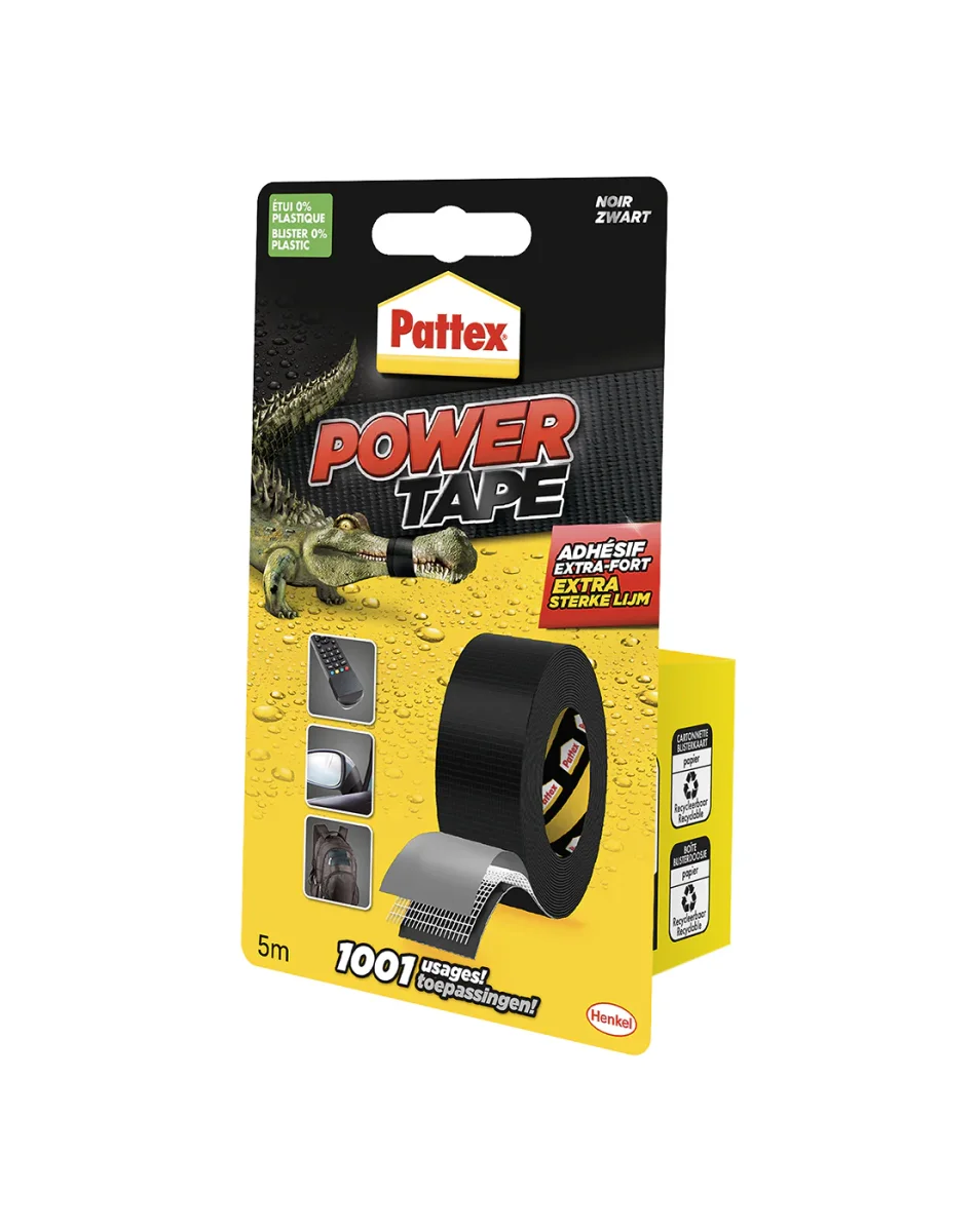 Als het écht vast moet zitten, kies je voor Pattex Power Tape. Dankzij de unieke lijm in combinatie met een sterke weefselstructuur is deze tape supersterk en geschikt voor 1001 toepassingen, zowel binnen als buiten.