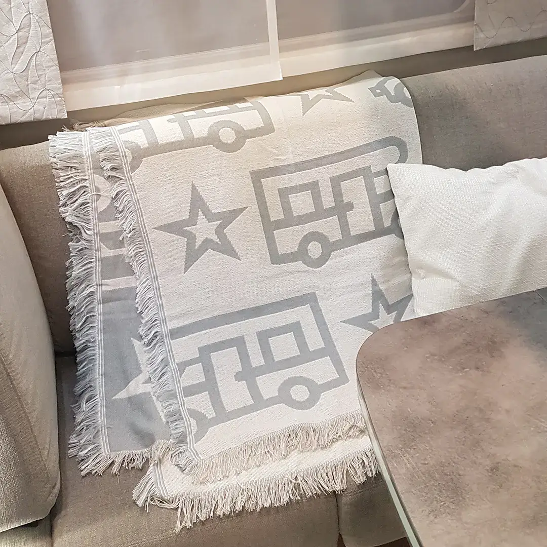 Maak je camper of caravan nóg gezelliger met deze zachte en ruime jacquardgeweven deken! Verkrijgbaar in twee verschillende prints – perfect om jouw reisstijl te matchen. De gedetailleerde camper- of caravanpatronen voegen een speelse touch toe aan je interieur, terwijl de hoogwaardige stof zorgt voor extra comfort.