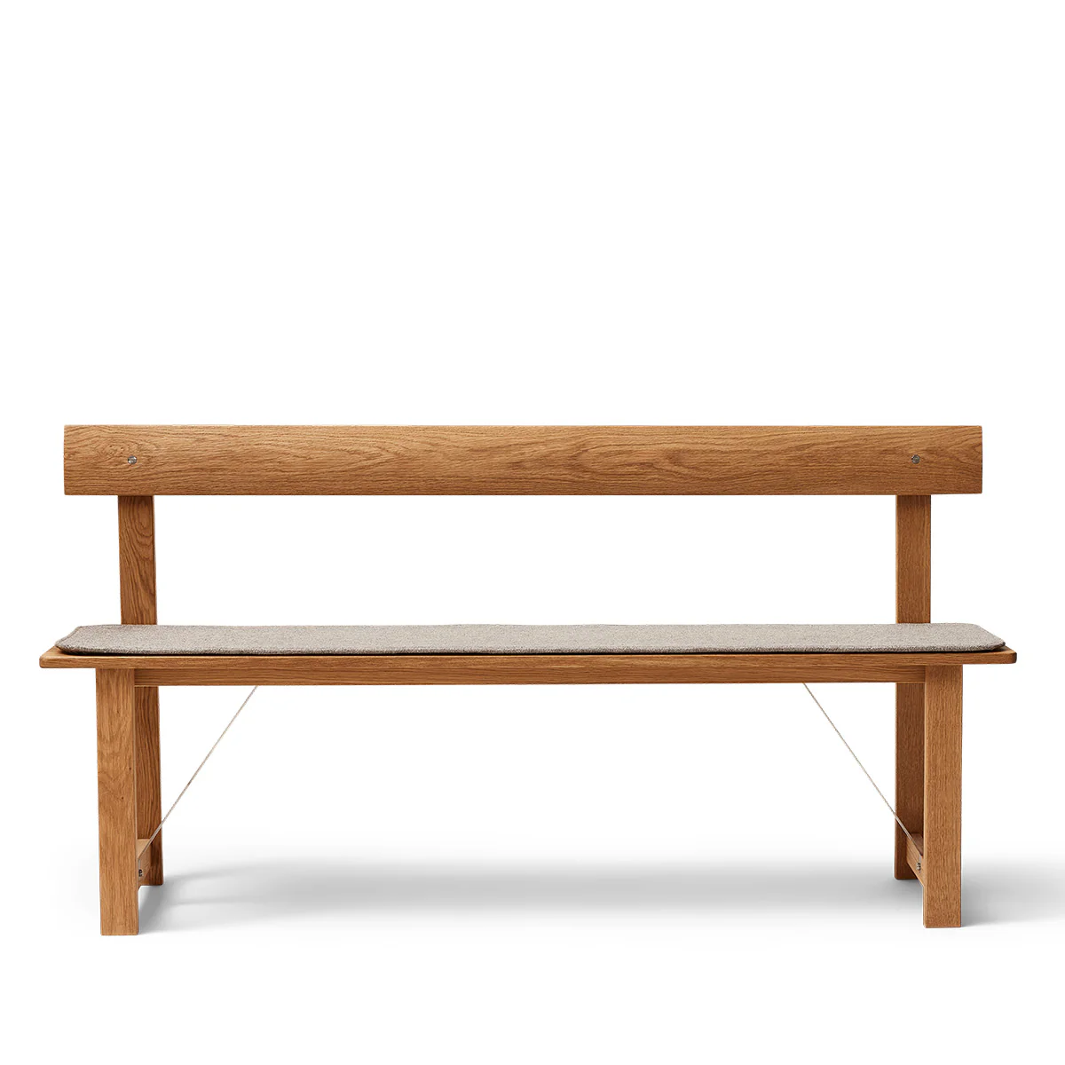 The Position bench features a striking silhouette defined by clean horizontal and vertical lines. The contrast with solid oak adds warmth and clarity to the design, highlighting its architectural character. A gently angled backrest offers subtle comfort, while refined steel detailing underneath reflects the care and craftsmanship behind this timeless piece.