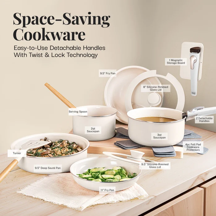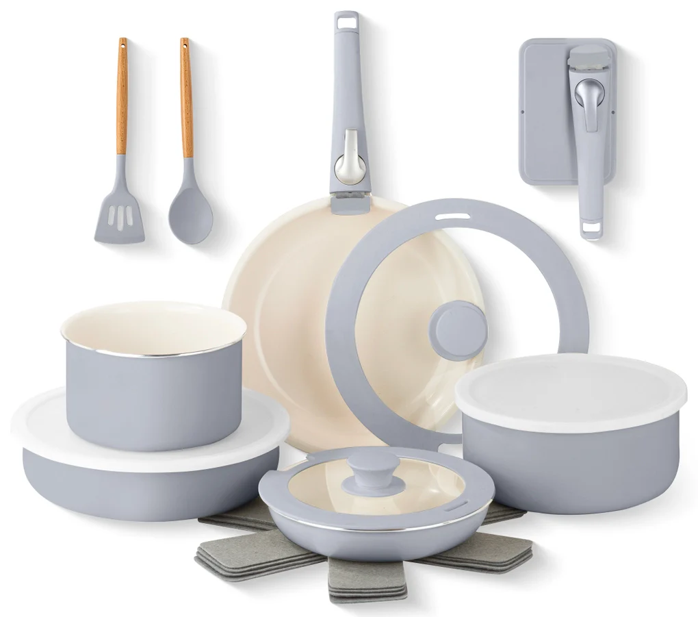 Breng je kampeerkeuken naar een hoger niveau met deze 18-delige Gotham Steel inductie kookset. Lichtgewicht maar stevig, perfect voor op de camping én thuis! Dankzij de keramische antiaanbaklaag met mineralen kook je zonder moeite én zonder olie.